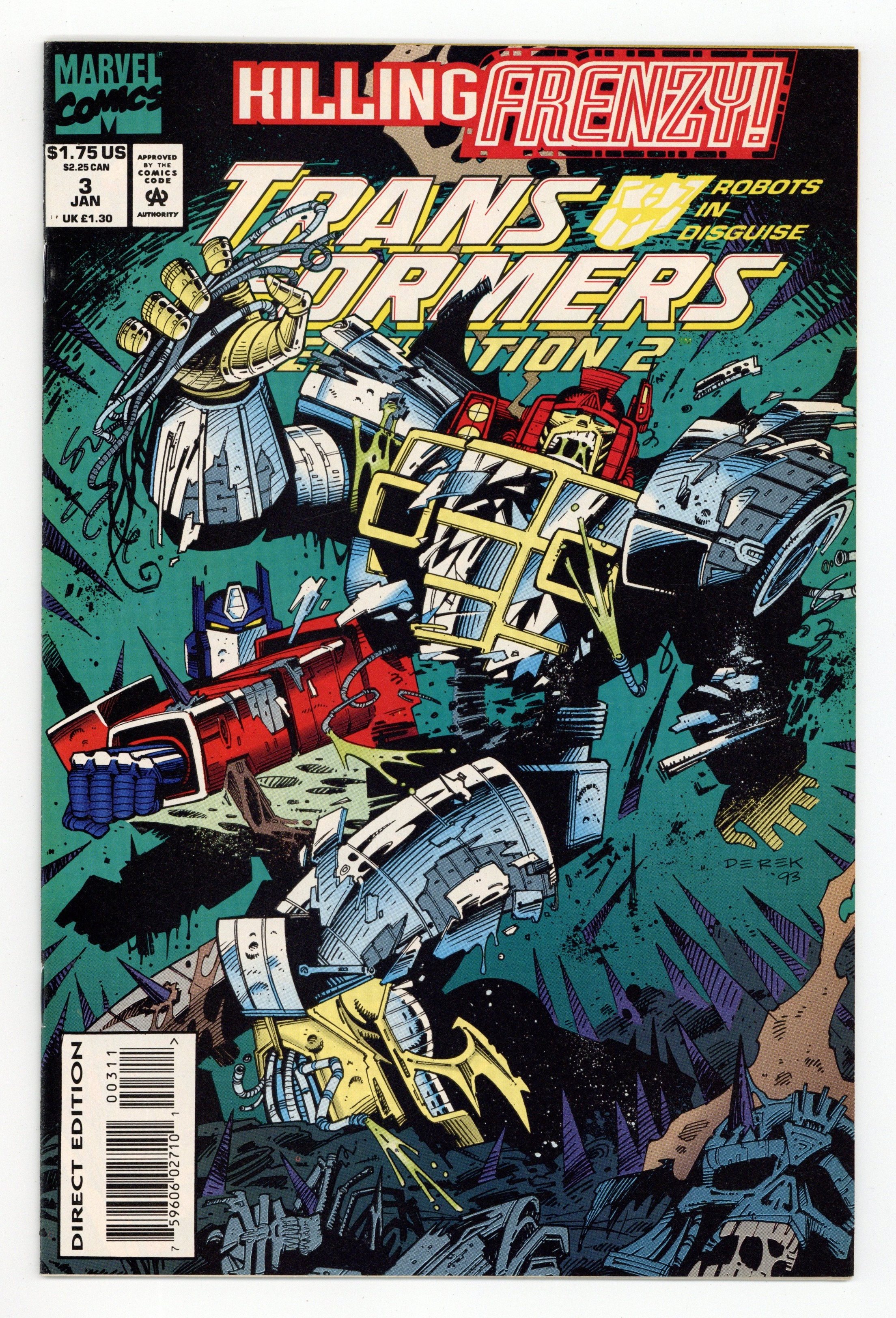 Optimus Prime's frightful premonitions continue, as the Autobots discover just how dangerous the Decepticon menace really is. Are the two connected, or is something even worse in the works? Written by Simon Furman. Pencils and cover by Derek Yaniger. Cover price $1.75.