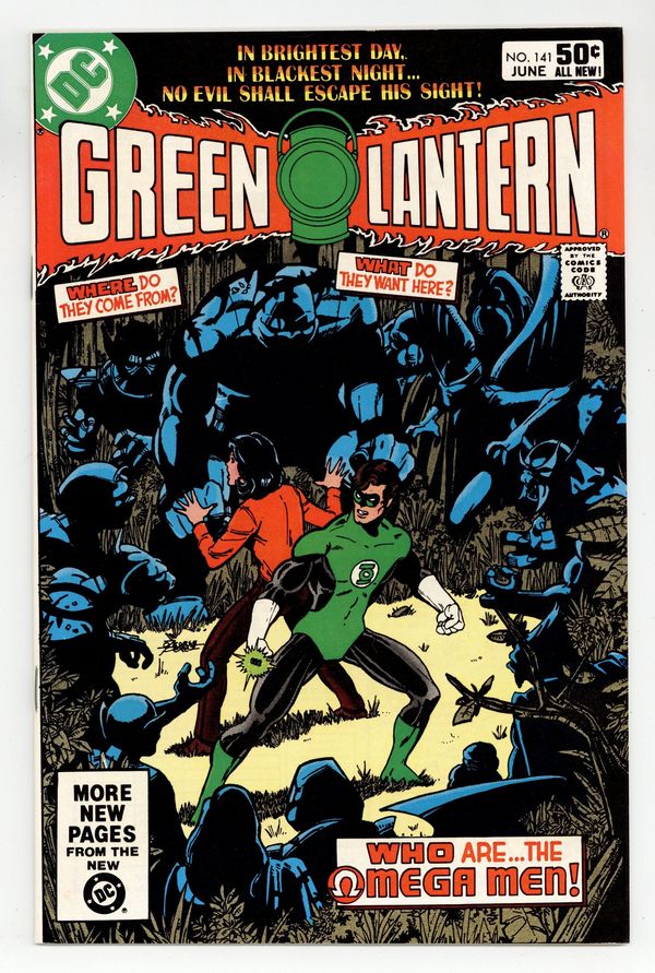 Starts Mar 16 Direct Edition. 1st appearance of Omega Men. "The Lurkers in the Shadow." While vacationing in Canada, Green Lantern and Carol Ferris are captured by the Omega Men, who make their first appearance. Script by Marv Wolfman, art by Joe Staton. Cover by George Pérez. Cover price $0.50.