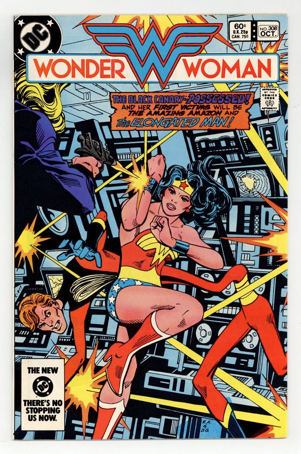 Tags: Wonder Woman$13.50The Black Canary - possessed! And her first victims will be the Amazing Amazon and the Elongated Man in "Heritage"! Written by Dan Mishkin, with art by Don Heck. Characters: Justice League of America [JLA; Wonder Woman; Black Canary (guest star); Elongated Man (guest star)]; Hippolyta; Etta Candy; The Gods [Aphrodite; Athena]; General Darnell; Major Keith Griggs; Sofia. Plus: the 7-page Huntress story "Pressure." Written by Joey Cavalieri, with art by Michael Hernandez and Frank Giacoia. Characters: Huntress [Helena Wayne]; Gary Minelli; Professor Fether (villain); Doctor Tarr (villain); Nedra Borrower; Commissioner O'Hara; Harry Sims. Cover by Ross Andru and Dick Giordano. 36 pages, Full Color. Cover price $0.60.