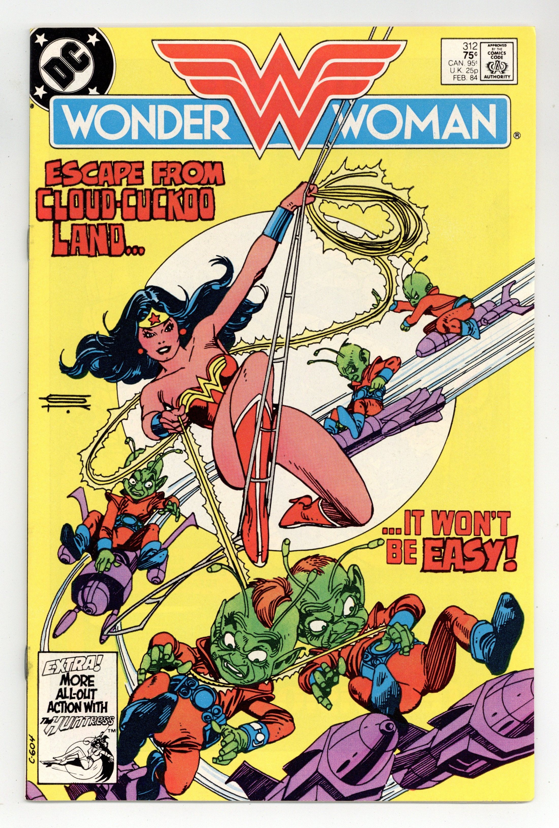 Tags: Wonder Woman$18.25Cover by Gil Kane. "Escape!", script by Dan Mishkin, art by Don Heck; Wonder Woman and Steve Trevor learn the Gremlins history and attempt to retrieve the Robot Plane from them before the Gremlins mother-craft returns to the stars. "The Voice of the People," script by Joey Cavalieri, art by Dan Spiegle; Huntress vs. Earthworm. 36 pages, Full Color. Cover price $0.75.