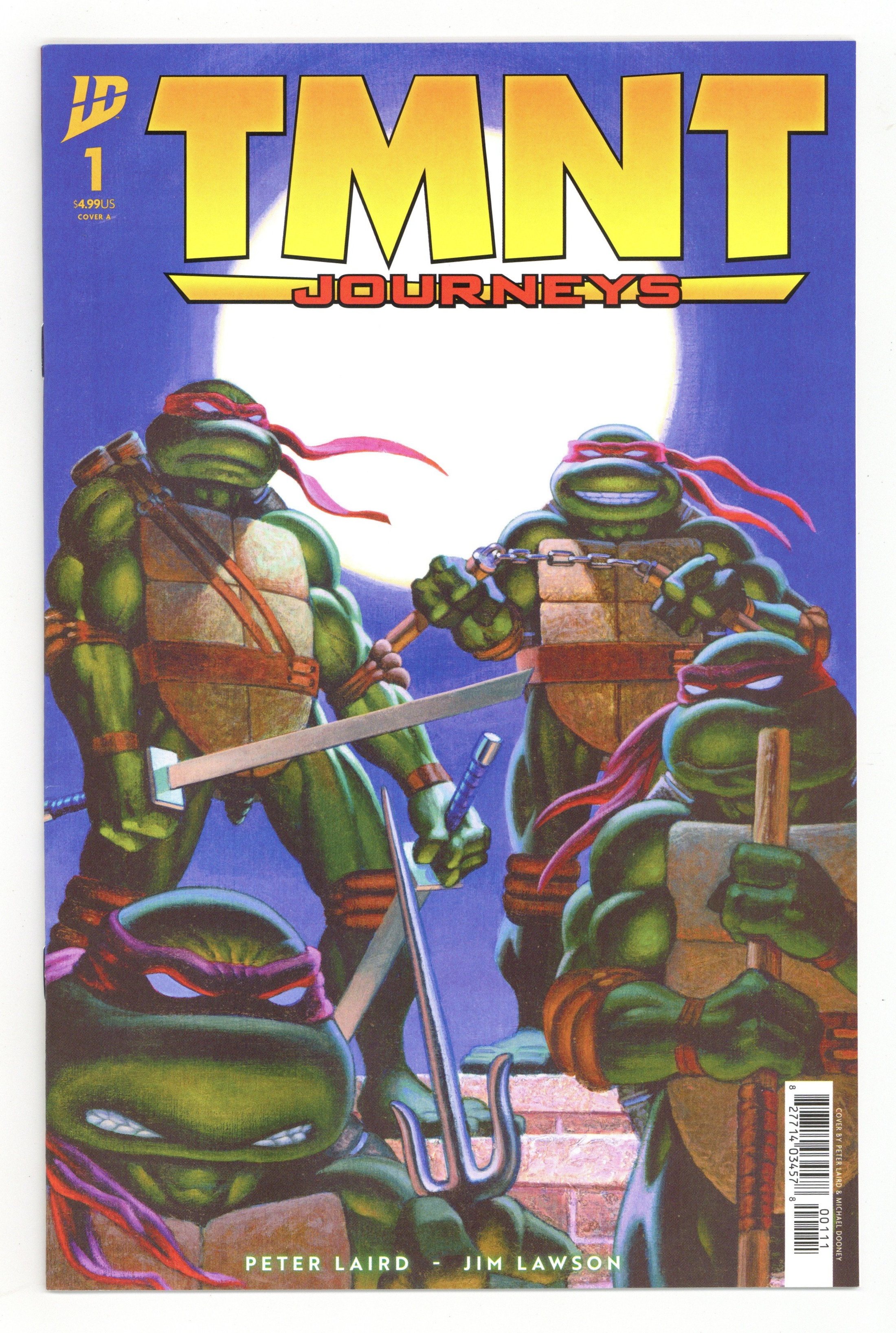 Published Dec 2001 by Mirage Studios.$60.00by Peter Laird & Jim Lawson Peter Laird was the co-creator of the original 1984 Teenage Mutant Ninja Turtles comic. He has since teamed up with Planet Racers collaborator Jim Lawson for this exciting new series featuring the turtles fifteen years after the events seen in the last Mirage TMNT series. A severe winter grips New York City. And to make matters worse, a space shuttle has disappeared from Earth orbit! Suddenly, the turtles are mistaken for aliens! They're attacked by the Madhattan Maulitia. Chaos ensues! b&w, 32pg$2.95 Cover price $2.95.