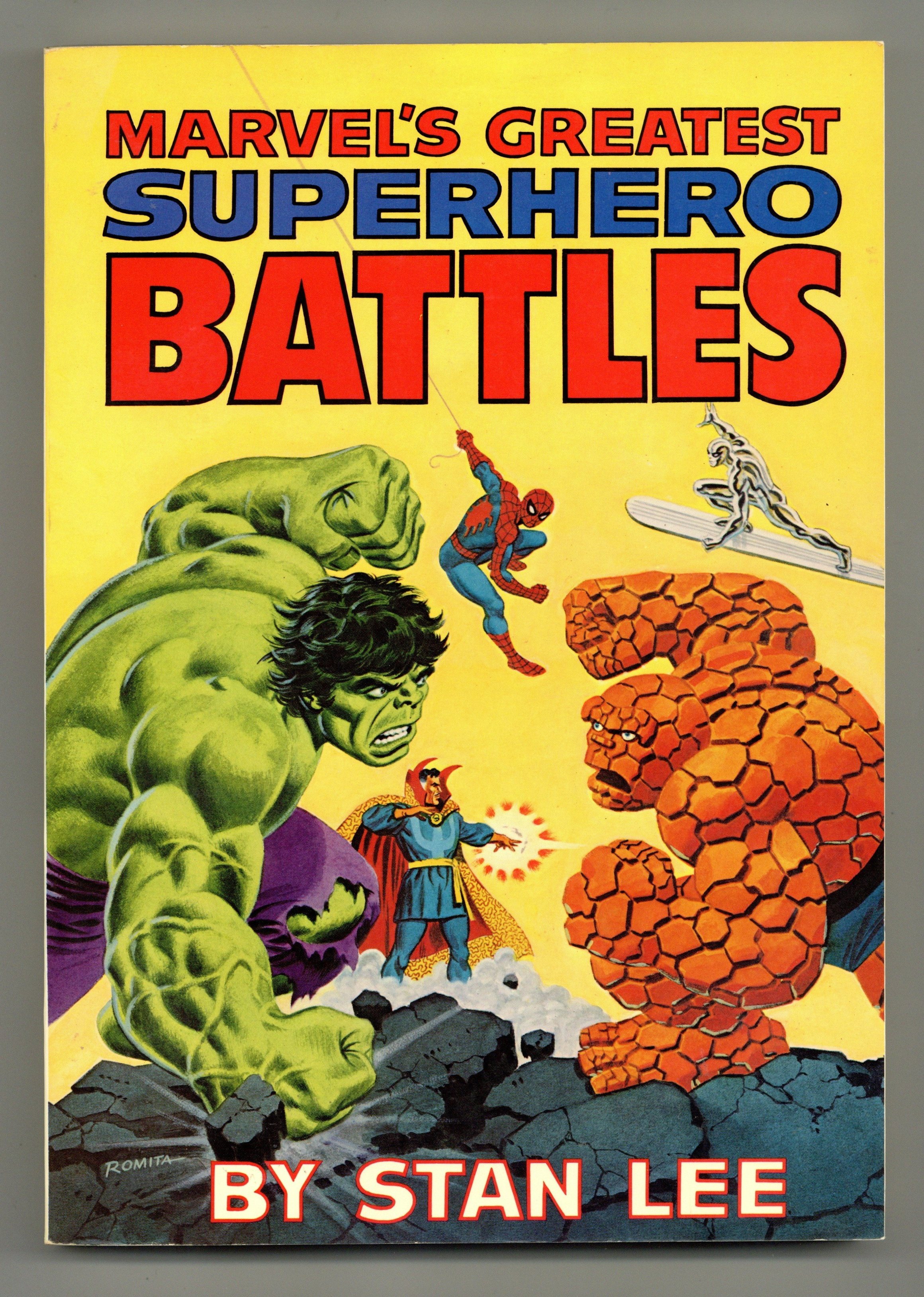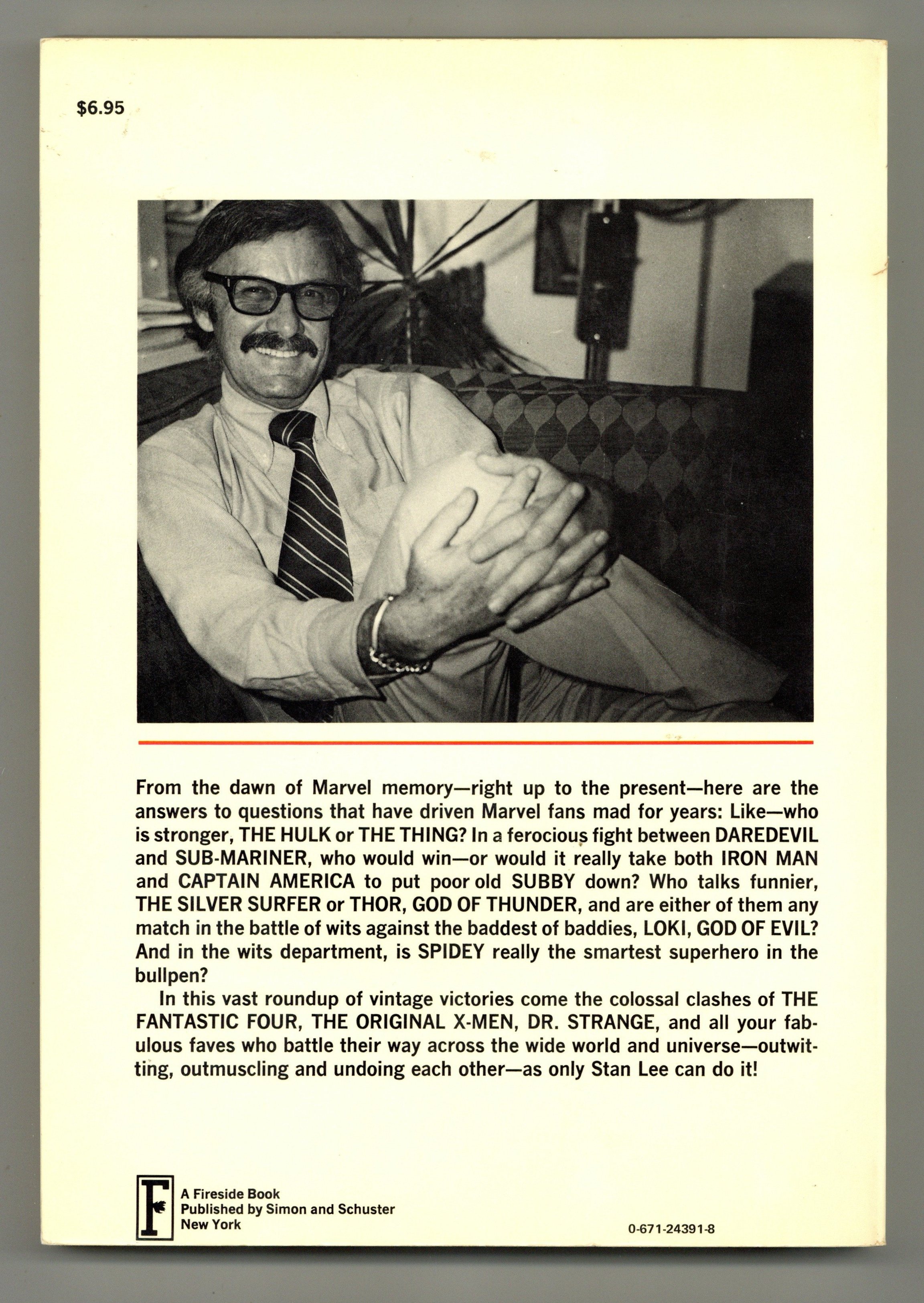 Fireside Edition - 1st printing. Collects Fantastic Four (1961-1996 1st Series) #25-26, Daredevil (1964-1998 1st Series) #7, Uncanny X-Men (1963-2011) 1st Series #3, Silver Surfer (1968-1970 1st Series) #4, Tales of Suspense (1959-1968) #79, 80-81, Strange Tales (1951-1976 1st Series) #188-190, and Amazing Spider-Man (1963 1st Series) #69. Cover by John Romita. Featuring these Mighty Marvel throw-downs - Hulk vs. Thing, Daredevil vs. the Sub-Mariner, X-Men vs. The Blob, Silver Surfer vs. Thor, Iron Man vs Sub-Mariner, Doctor Strange vs. Dormammu, and Spider-Man vs. Kingpin! Softcover, 260 pages, full color. Cover price $6.95.