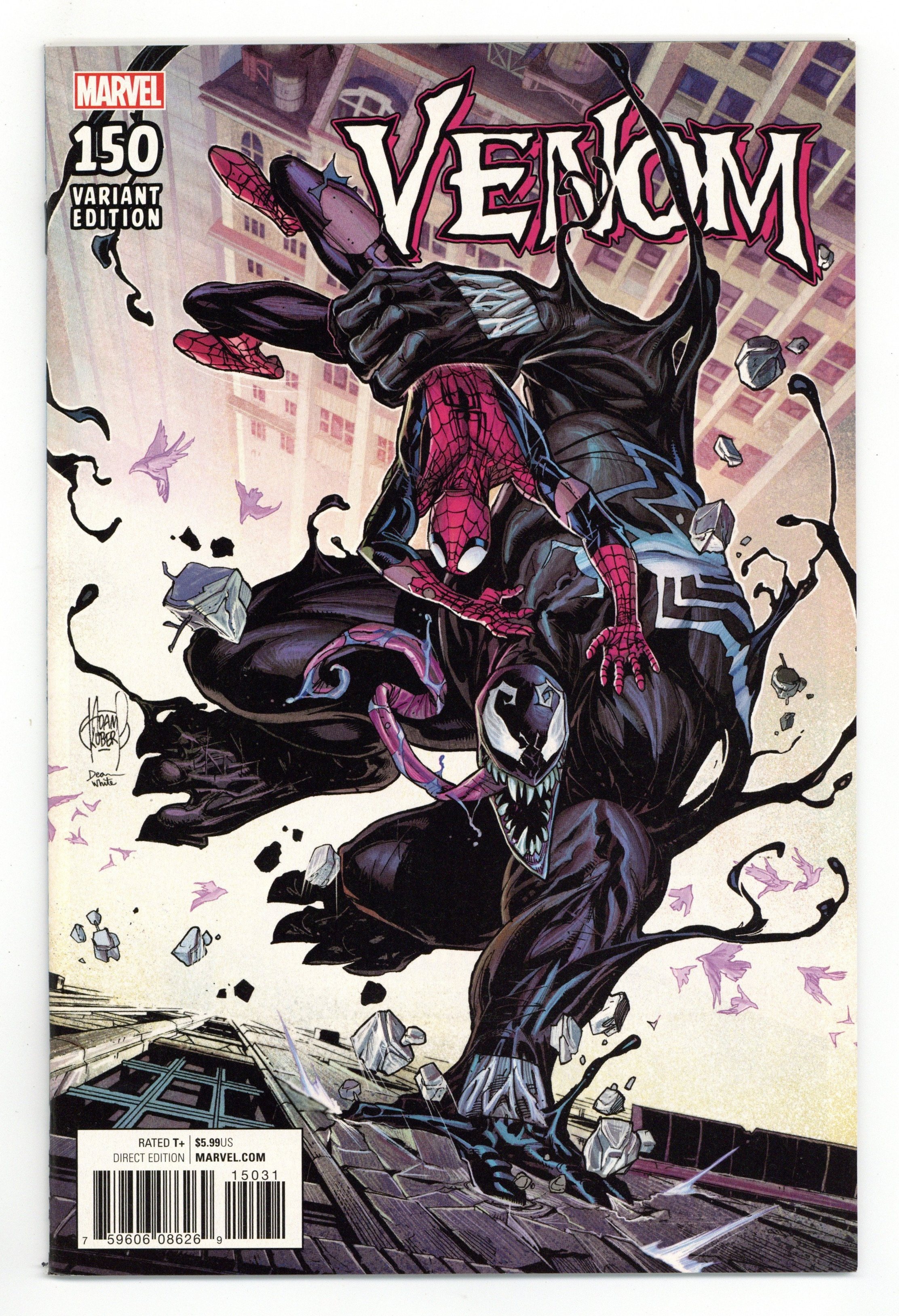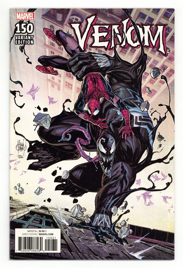 Tags: Spider-Man$17.50Limited 1 for 100 Retailer Incentive Variant Cover. Written by Mike Costa, Robbie Thompson and David Michelinie. Art by Gerardo Sandoval, Tradd Moore and Ron Lim. Cover by Adam Kubert. REUNITED, AND IT FEELS SO GOOD! Or, feels so bad? However it feels, Eddie Brock and the Venom symbiote have been reunited, and they're web-slinging their way around New York again. Featuring a host (hah!) of Venom creators from the character's near 30-year history, this monstrous anniversary spectacular welcomes guest artist TRADD MOORE for an oversized and brutal main story AND a lethal story featuring fan-favorite creators David Michelinie and Ron Lim, reunited! With questions still lingering about how the symbiote was separated from Flash Thompson, and what lies in its future now that it's reunited with Eddie Brock, this is one issue you can't afford to miss! 52 pages, full color. Rated T+ Cover price $5.99.