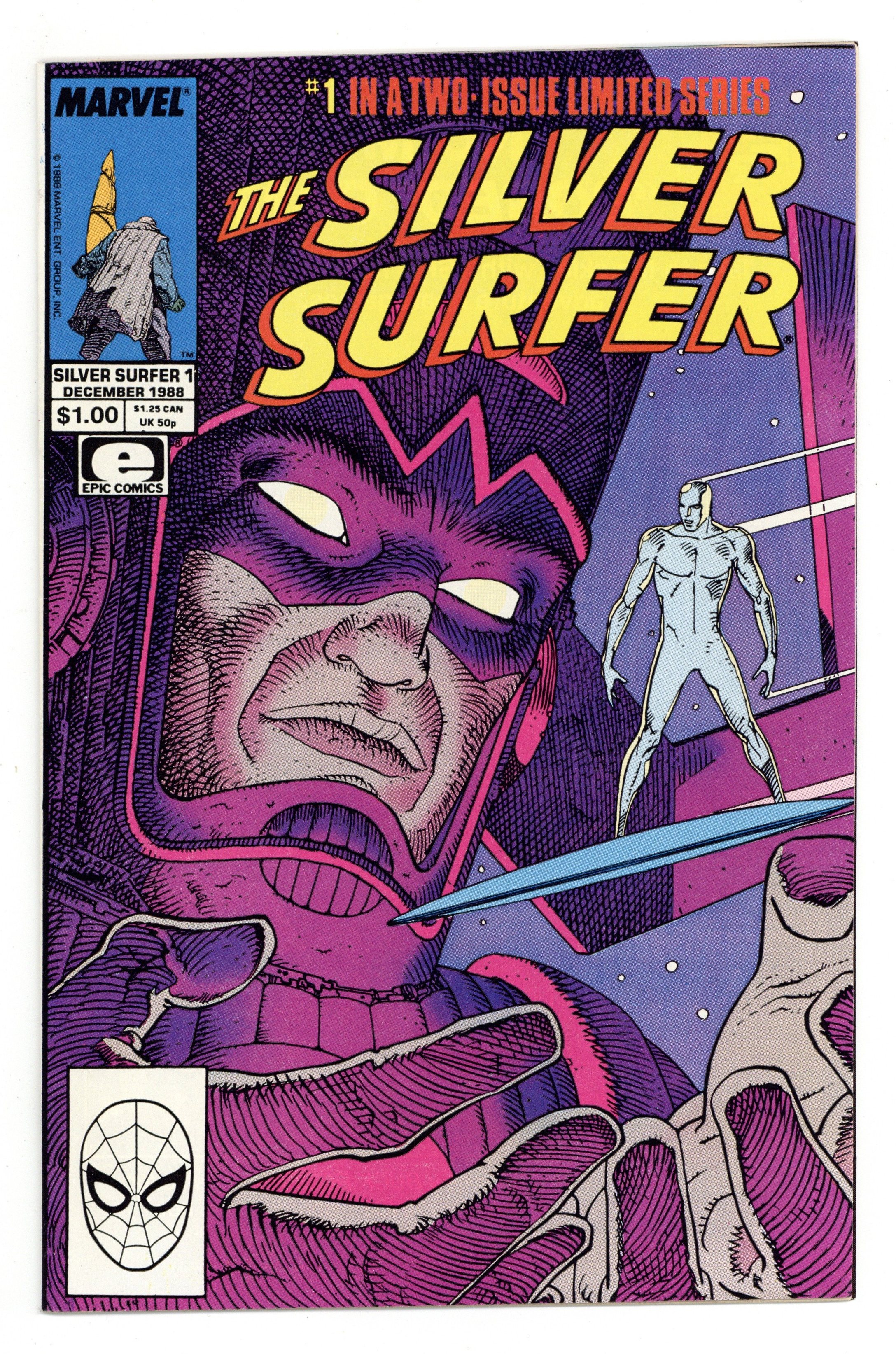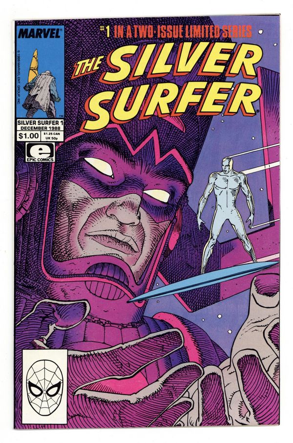 Direct Edition. Cover by Moebius. Parable, script by Stan Lee, art by Moebius; The Silver Surfer is a street person on Earth when Galactus arrives and proclaims himself God and tells everyone to have a good time. 36 pgs., full color. $1.00. Cover price $1.00.