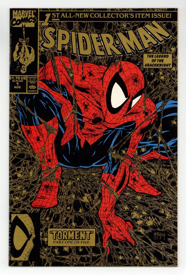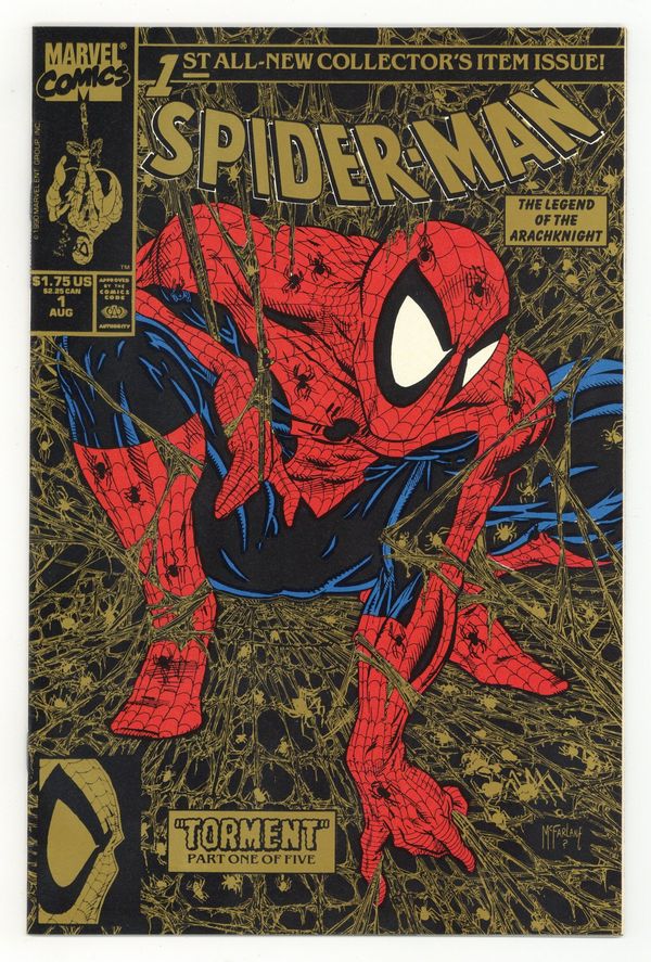 $30.002nd Printing, Black Cover with Gold Webbing. 2nd Printing, (Spidey's head in UPC box. This is NOT barcode version). Cover price $1.75.