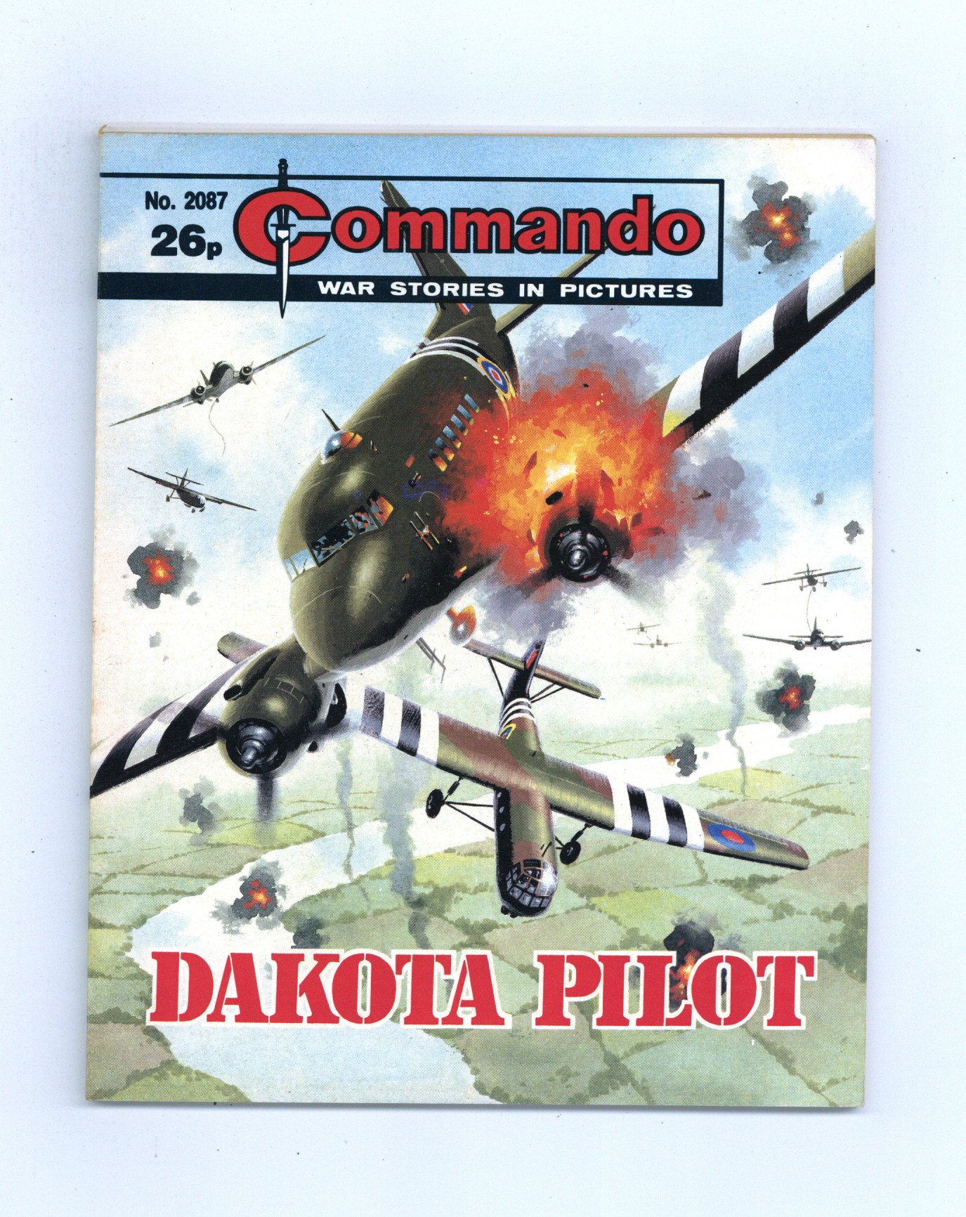Published May 1987 by D. C. Thomson.$6.00Weekly British War comics digest. ""Dakota Pilot" Softcover, 5 1/2-in. x 6 1/2-in., 68 pages, B/W.