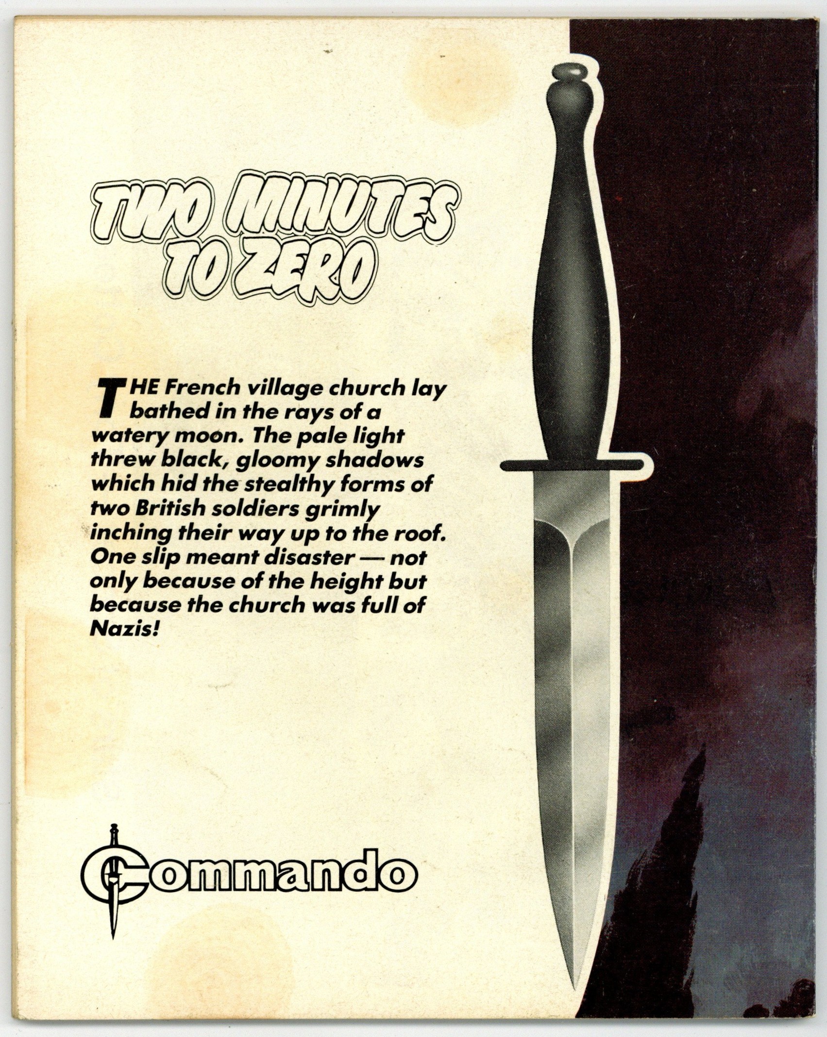 Published Apr 1989 by D. C. Thomson.$2.80Weekly British War comics digest. "Two Minutes to Zero" Softcover, 5 1/2-in. x 6 1/2-in., 68 pages, B/W.