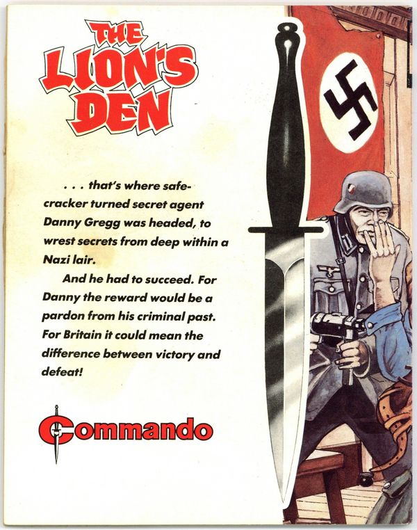 Published Jan 1993 by D. C. Thomson.$2.70Weekly British War comics digest. "The Lion's Den" Softcover, 5 1/2-in. x 6 1/2-in., 68 pages, B/W.