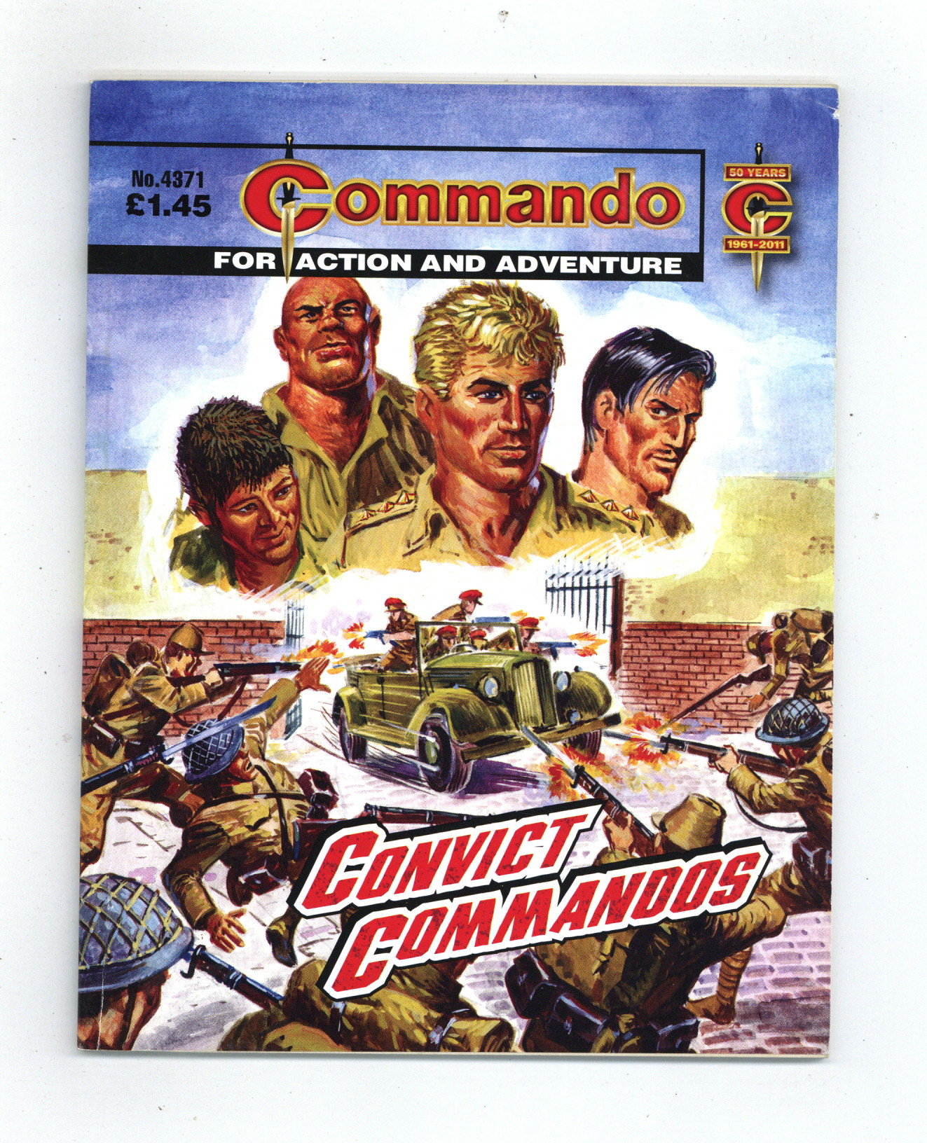 Convict Commandos - Written by Alan Hebden. Art and Cover by Manuel Benet. There you are -- stuck in a military prison in Singapore when the Japanese smash into town. You know that if being a prisoner of the British is bad, being a prisoner of the Japanese will be ten times worse. So if a man in a British officer's uniform was to offer to get you out if you'd work for him, you'd agree to do anything he ordered, wouldn't you? The Convict Commandos did...and probably wished they hadn't! Weekly British War comics digest. Softcover, 5 1/2-in. x 6 1/2-in., 68 pages, B&W.