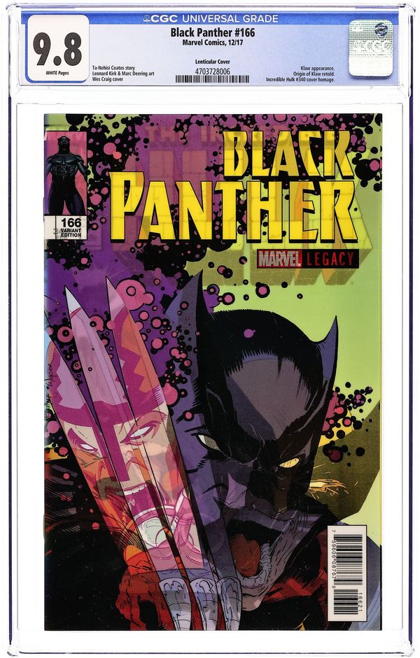Lenticular Cover by Wesley Craig. Written by Ta-Nehisi Coates. Art by Leonard Kirk. KLAW STANDS SUPREME Part 1 Black Panther's greatest foe has returned - Ulysses Klaw is back and ready for war! Can T'Challa defeat the man who killed his father all while his country struggles to its feet? And as war looms, Wakanda's gods have disappeared. Enter the Originators! The former gods are back - but what are their intentions for a land that has forgotten them? PLUS: Includes 3 bonus MARVEL PRIMER PAGES! Story by Robbie Thompson and Wilfredo Torres! 28 pages, full color. Rated T Cover price $3.99.