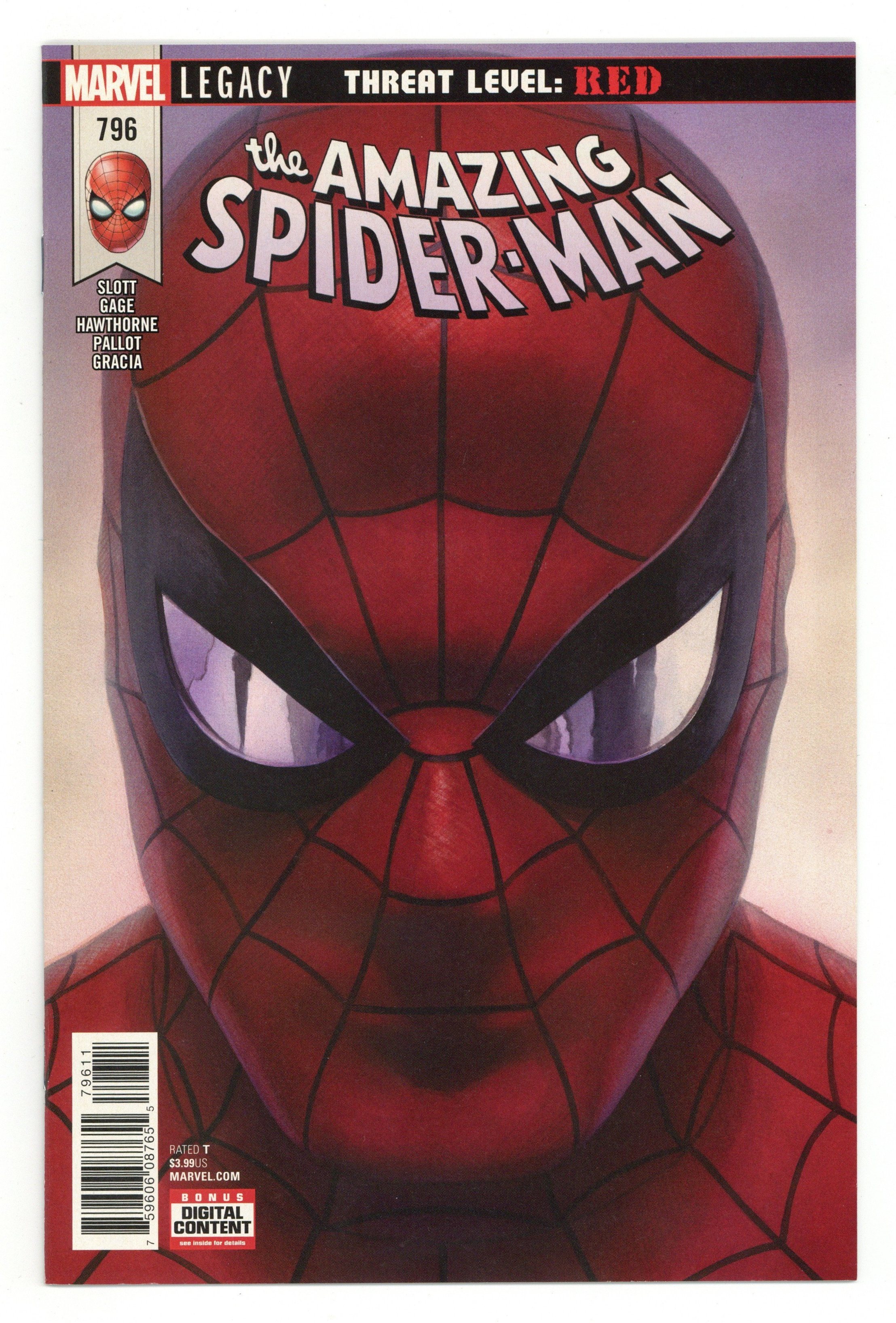 Threat Level Red: Part 3 of 3 - Written by Dan Slott and Christos Gage. Art by Mike Hawthorne. Cover by Alex Ross. You've watched for months as Norman Osborn has scoured the globe for a cure to the genetic tampering that prevents him from becoming the Green Goblin. IN THIS ISSUE…HE FINDS IT! And it spells the worst kind of trouble for your Friendly Neighborhood Spider-Man! 28 pages, full color. Rated T Cover price $3.99.