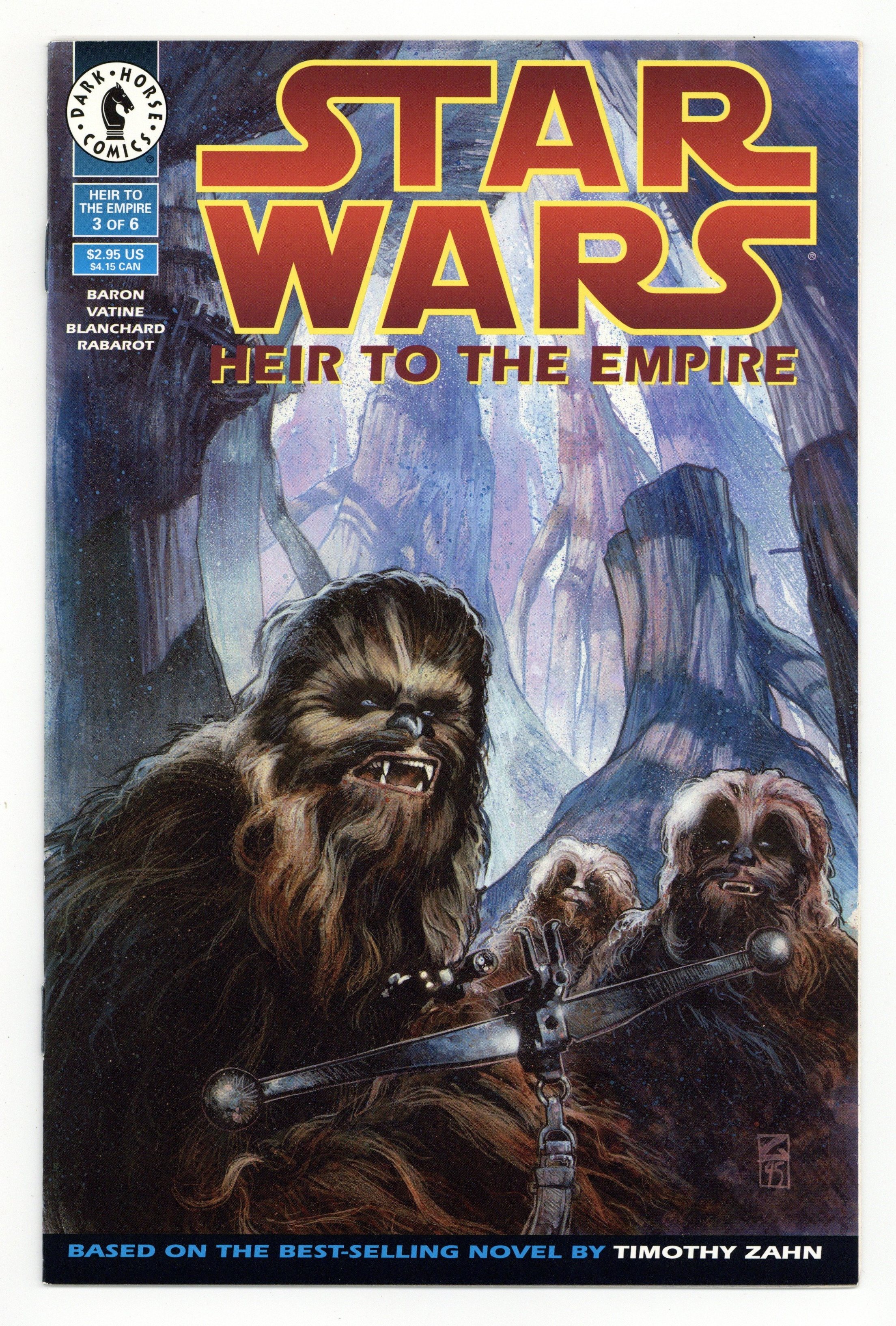 Tags: Star WarsPublished Dec 1995 by Dark Horse.$16.00Written by Mike Baron. Art by Olivier Vatine and Fred Blanchard. Cover by Mathieu Lauffray. When an Imperial assassin puts Leia in his cross-hairs, Chewbacca crosses the galaxy to take Leia to a place of safety. But there are things in the galaxy that are worse than being assassinated, and "safety" is only relative. 32 pages, FC. Cover price $2.95.