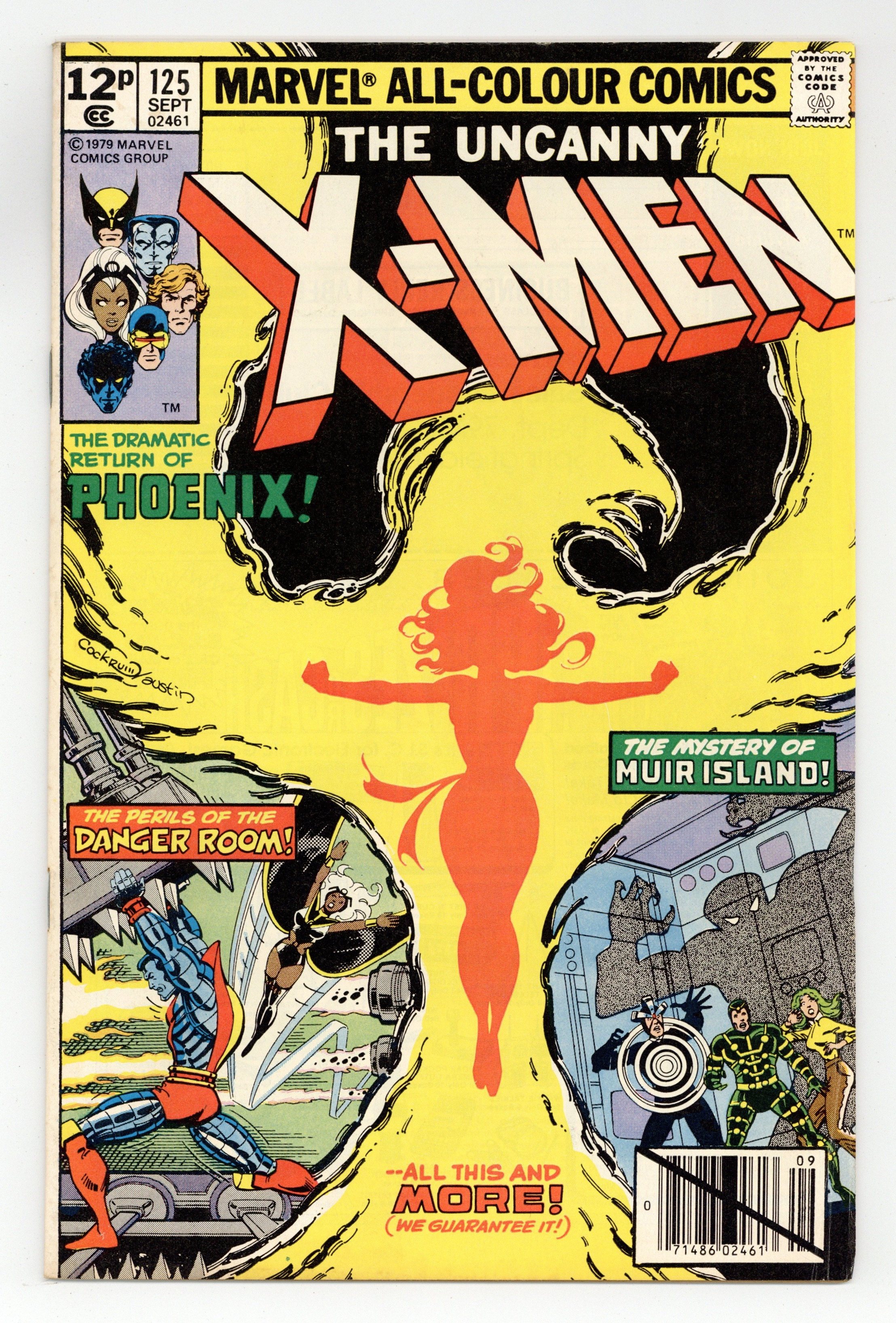 UK edition. Identical to US edition, but has 12p cover price. As the cover says: the dramatic return of Phoenix! "There's Something Awful on Muir Island!" "...!" Story by Chris Claremont and John Byrne. Art by John Byrne and Terry Austin. First appearance of Mutant X (Proteus).