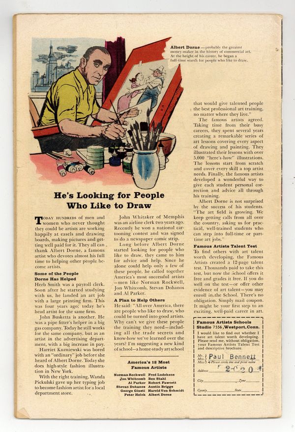 "Now, By My Hand, Shall Die a Villain!" Script by Stan Lee, layouts by Jack Kirby, pencils by Don Heck, inks by Mike Esposito (as Mickey Demeo). Avengers Roll Call: Thor, Captain America, Iron Man, Giant Man, Wasp, and Rick Jones. Villains: the first Baron Zemo, the Enchantress, the Executioner, the Melter, the second Black Knight, and the first appearance of Zemo's Mercenaries (Erik Josten). Baron Zemo is killed when a laser ray, he fires, reflects off of Captain America's shield and causes an avalanche that buries the baron underneath a ton of rock. Reprinted in Marvel Triple Action # 9. Kirby/Chic Stone cover. 36 pgs. Cover price $0.12.
