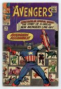 Tags: Marvel Legacy Numbering: Avengers (part 16), Avengers$125.00"The Old Order Changeth!" Script by Stan Lee, layouts by Jack Kirby, finished art by Dick Ayers. New line-up for Avengers: Captain America, Thor, Iron Man, Wasp, Giant Man, Hawkeye, Quicksilver, Scarlet Witch, and Rick Jones. First appearance in Avengers of Edwin Jarvis, the butler (in Avengers). Villains: The Melter, the Enchantress, the Executioner, the second Black Knight, and Zemo's Mercenaries (Erik Josten). Guest Appearances by the Sub-Mariner, the Black Widow, the Mole Man, Kang, and Immortus. Cameos by Magneto, Mastermind, the Toad, Beast, Iceman, Angel (on loan from the original X-Men), and Hulk. Reprinted in Marvel Triple Action # 10. Kirby/Sol Brodsky cover. 36 pages, full color. Cover price $0.12.