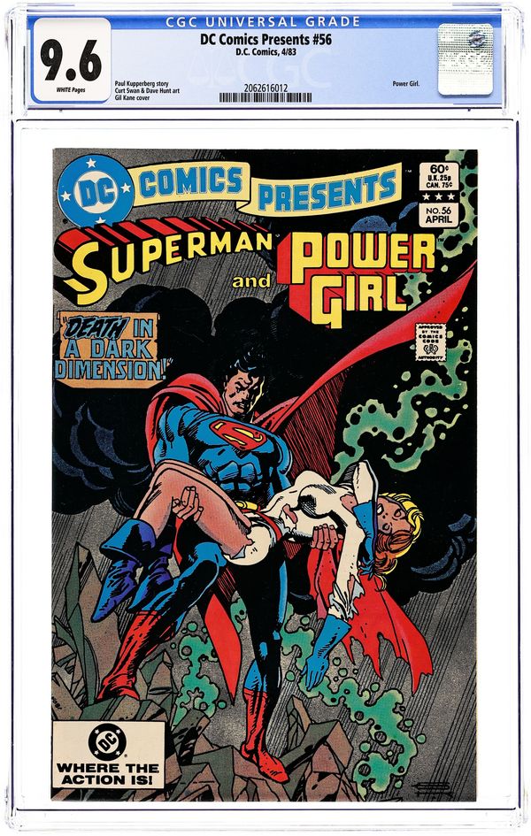 DC Comics Presents: Superman and Power Girl - "Death in a Dark Dimension!" Written by Paul Kuppergerg. Art by Curt Swan and Dave Hunt. Cover by Gil Kane. From Earth-1, the Man of Steel suddenly disappears. Meanwhile on Earth-2, the same thing happens to Power Girl. These two mighty champions of justice soon find themselves trapped in a dark dimension and facing the terrible might of Maaldor the Darklord! 32 pages, FC. Cover price $0.60.