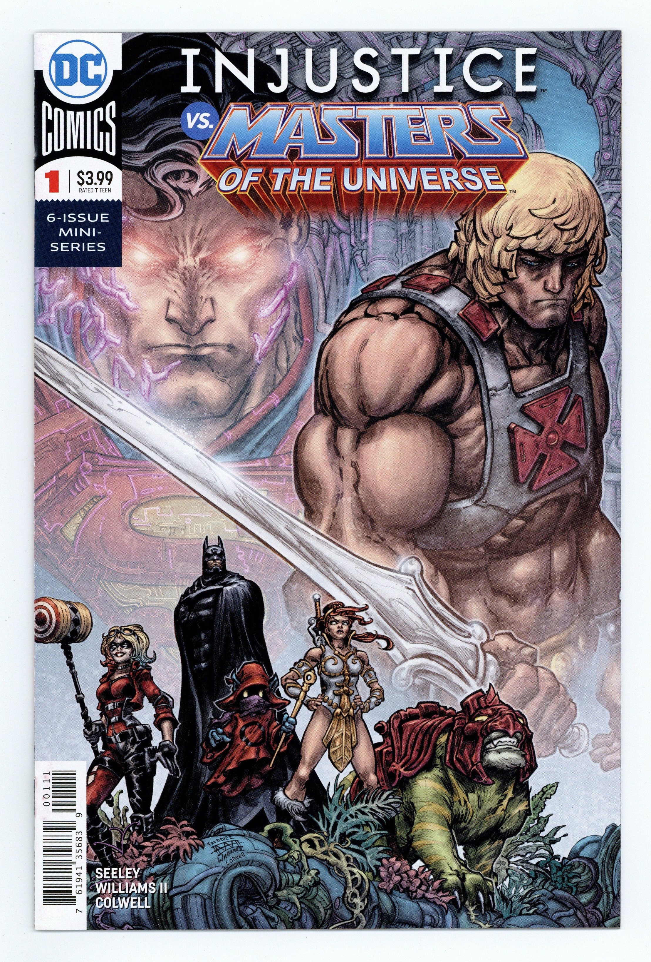 $20.00Written by Tim Seeley. Art and Cover by Freddie Williams II. Believing He-man and the Masters of the Universe defeated, a robotic impostor has seized control of Eternia-but not for long! After freeing his kingdom from this strongman's rule, Prince Adam learns not everyone is pleased to see the pretender deposed-but Adam knows the value of freedom. So when heroes from another dimension ask his aid in deposing a super-hero turned dictator, he agrees. Teaming up with Batman against the Superman of the Injustice Universe, He-man and his new allies face dangerous and familiar enemies in a battle where no world is safe! 32 pages, full color. Rated T Cover price $3.99.