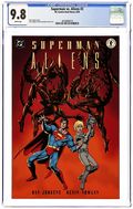 Written by Dan Jurgens. Art and cover by Dan Jurgens and Kevin Nowlan. In the far corners of space, Earth's yellow sun is a distant memory to Superman. Without its nurturing glow, his powers are fading fast. Will they hold out long enough for him to save the domed city of Argo from an infestation of Aliens, or is The Man of Steel doomed to die amongst what may be the ruins of his long-lost Krypton? FC. Cover price $4.95.