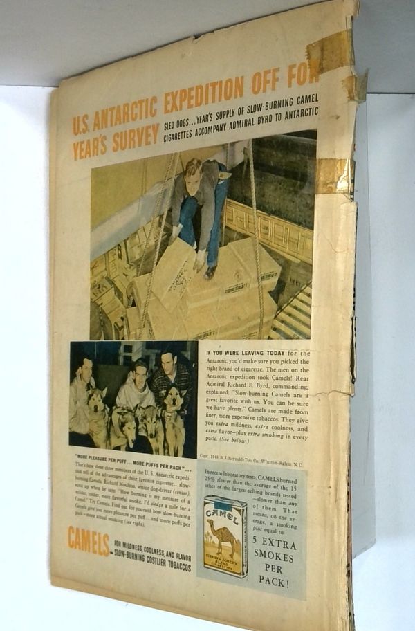- Front cover detached 25%. Water damage: Moderate. Staple rust: Extensive.