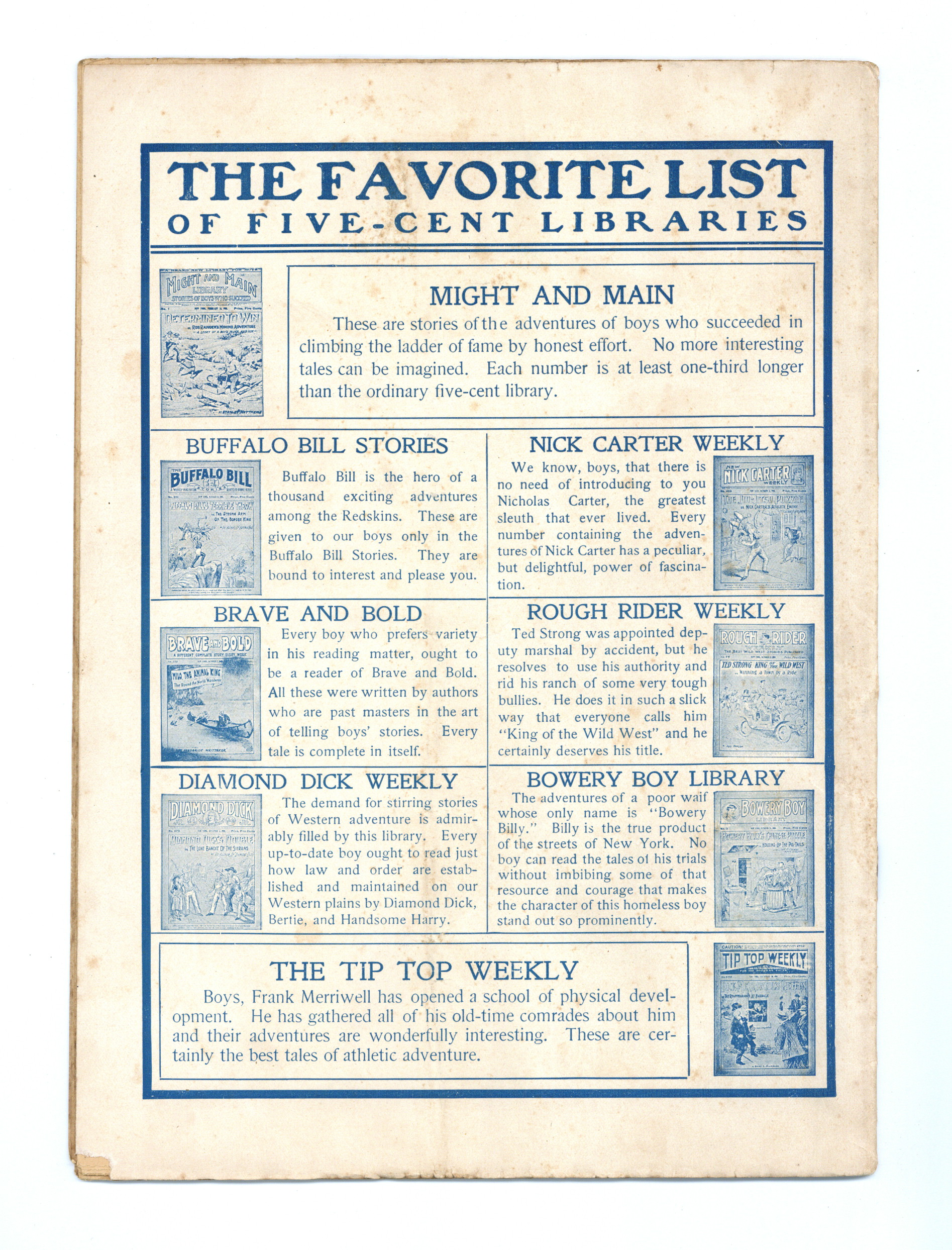 Tags: Pulp AdventurePublished Jul 1906 by Street & Smith.$21.00- Staple rust: Moderate.