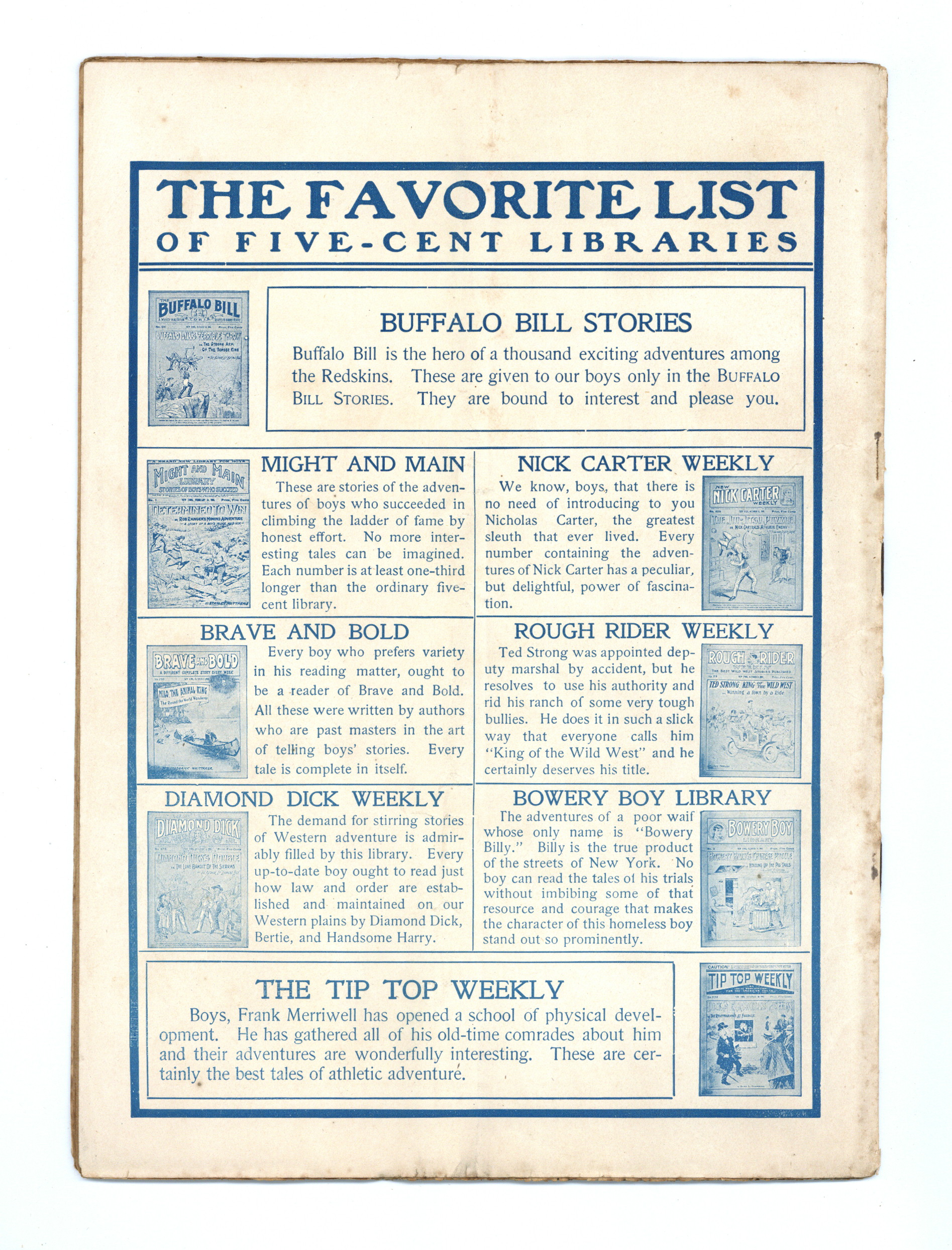 Tags: Pulp AdventurePublished Nov 1906 by Street & Smith.$18.00- Spine split 5%. Staple rust: Moderate.