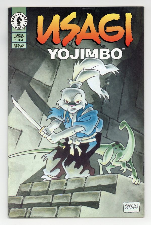 Published Apr 1996 by Dark Horse.$14.00Story and art by Stan Sakai. The close of sixteenth century Japan is regarded as the Age of Civil Wars, as feudal lords fought amongst themselves for land and power. When one leader finally rose above the others and was proclaimed Shogun, a peace came upon Japan and the samurai warriors found themselves suddenly unemployed. Many of these Ronin turned to banditry to survive, others found work with minor lords. And a small number traveled the musha shugyo -- the warrior pilgrimage -- to hone their spiritual and martial skills. But whether they took the honest road or the crooked path, the Ronin all found one common link -- they were generally less than welcome. Such is the tale of Usagi Yojimbo. 32 pages, B&W. Cover price $2.95.