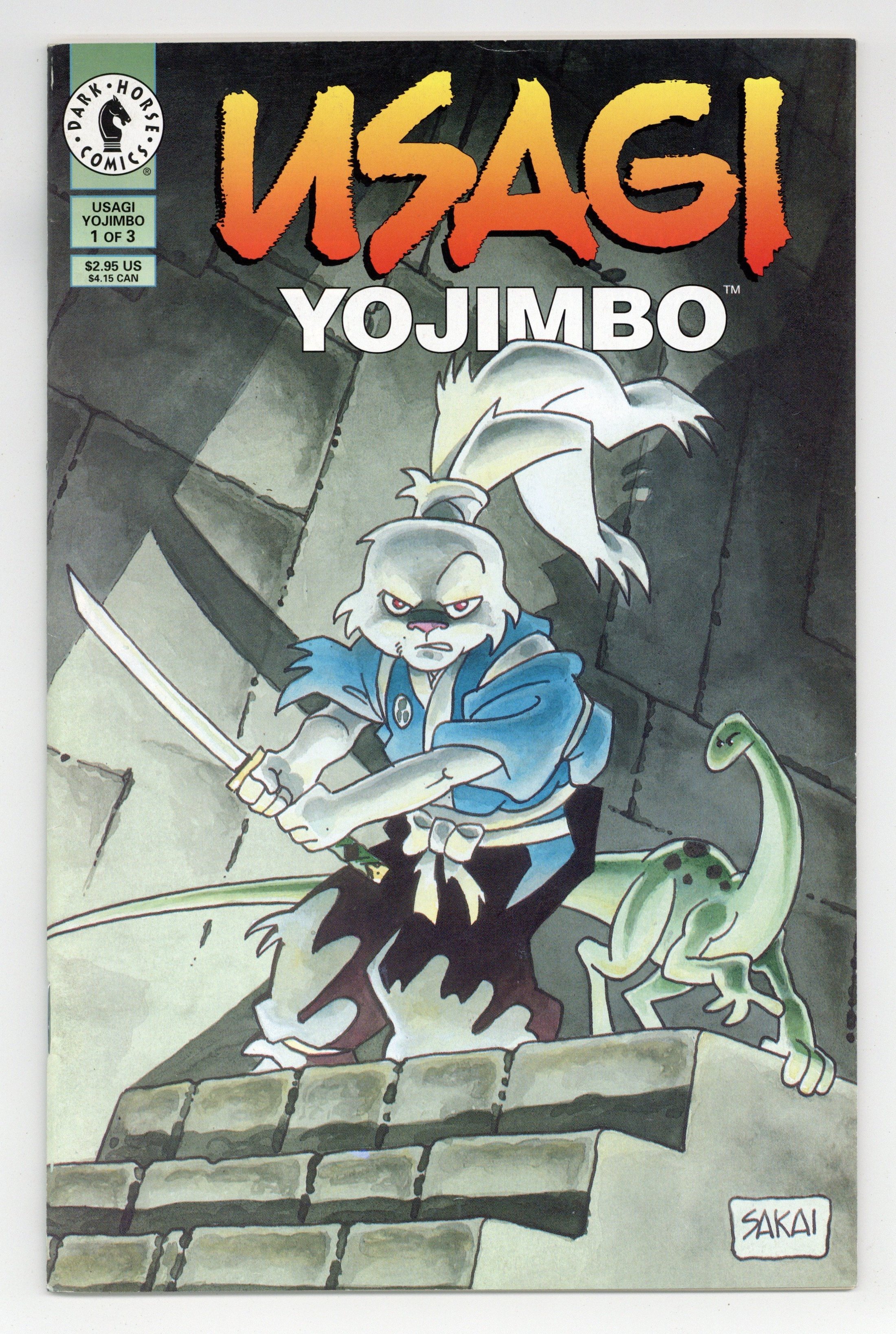 Published Apr 1996 by Dark Horse.$12.00Story and art by Stan Sakai. The close of sixteenth century Japan is regarded as the Age of Civil Wars, as feudal lords fought amongst themselves for land and power. When one leader finally rose above the others and was proclaimed Shogun, a peace came upon Japan and the samurai warriors found themselves suddenly unemployed. Many of these Ronin turned to banditry to survive, others found work with minor lords. And a small number traveled the musha shugyo -- the warrior pilgrimage -- to hone their spiritual and martial skills. But whether they took the honest road or the crooked path, the Ronin all found one common link -- they were generally less than welcome. Such is the tale of Usagi Yojimbo. 32 pages, B&W. Cover price $2.95.