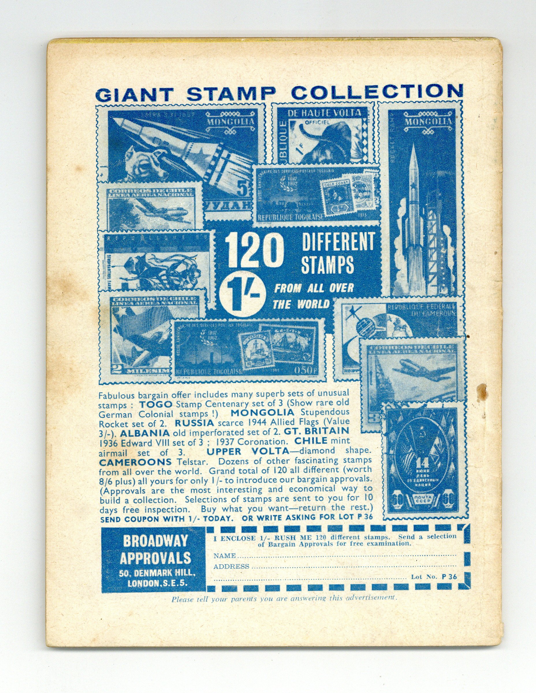 Published 1964 (est.) by IPC/Fleetway.$2.65- Front cover detached 15%. Back cover detached 15%. Water damage: Moderate. Staple rust: Extensive. Foreign edition: UK.
