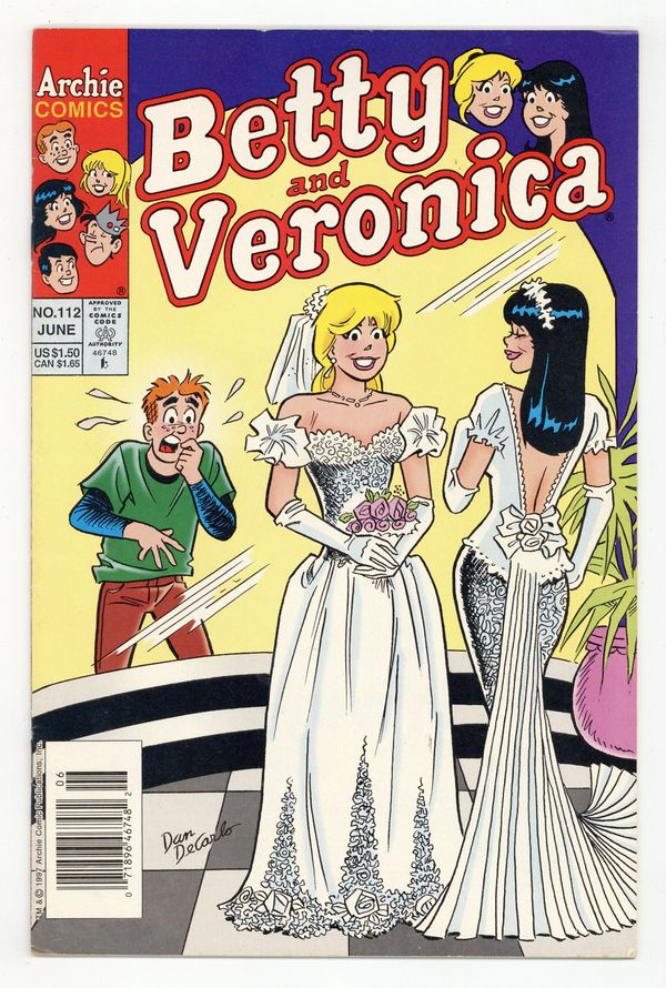 Written by Barbara Slate and Kathleen Webb. Art by Dan DeCarlo. Cover by Dan DeCarlo. Archie spots Betty and Veronica modeling wedding gowns for a local boutique and assumes they're marrying someone else. Betty and Veronica get all dolled up to swoon over a world-famous, handsome astronomer who is staying at the Lodge Mansion. Betty The Model Bride fashion page by Dan DeCarlo. Veronica The Model Bride fashion page by Dan DeCarlo. 36 pages, full color. $1.50. Cover price $1.50.