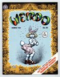 2nd Printing. Cover by Robert Crumb. "Hillary's Impertinent Pup," photos by Terry Zwigoff; Hillary takes her dog for a walk but gets all tangled up. "The Entropy Crisis," script and art by Harry S. Robins; Poem about entropy. "Science Or Sanity?", script and art by Harry S. Robins; The Professor lucks out in love. "Weirdo Does a Total Makeover," photos by Terry Zwigoff; A bum has a Weirdo makeover. "Backwoods Comic Postcards," art by Norman F. Pettingill; Eight cartoons about 1940s rural American life. "Mr. Bunch Takes a Sabbatical," script and art by Aline Kominsky-Crumb; The Bunch loses her masculine side. "Weirdo Art Section: It's Art For Art's Sake!" by Robert Crumb; Cartoon doodles. "Bloods in Space," script by Kevin Lambert, art by Dori Seda; Earth has a visitation. Assorted one-page strips by Robert Crumb. 44 pgs., B&W. 8-in. x 11-in. $2.25. Cover price $2.25.