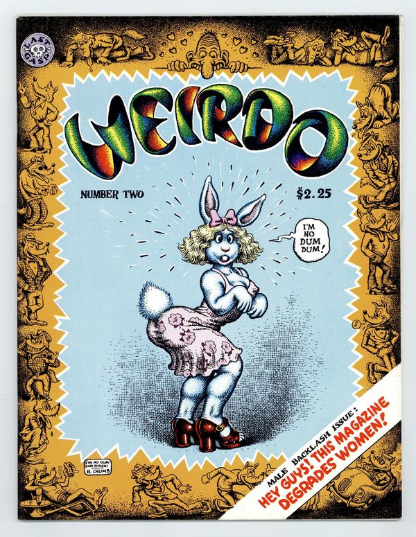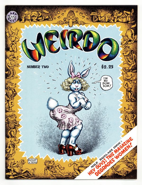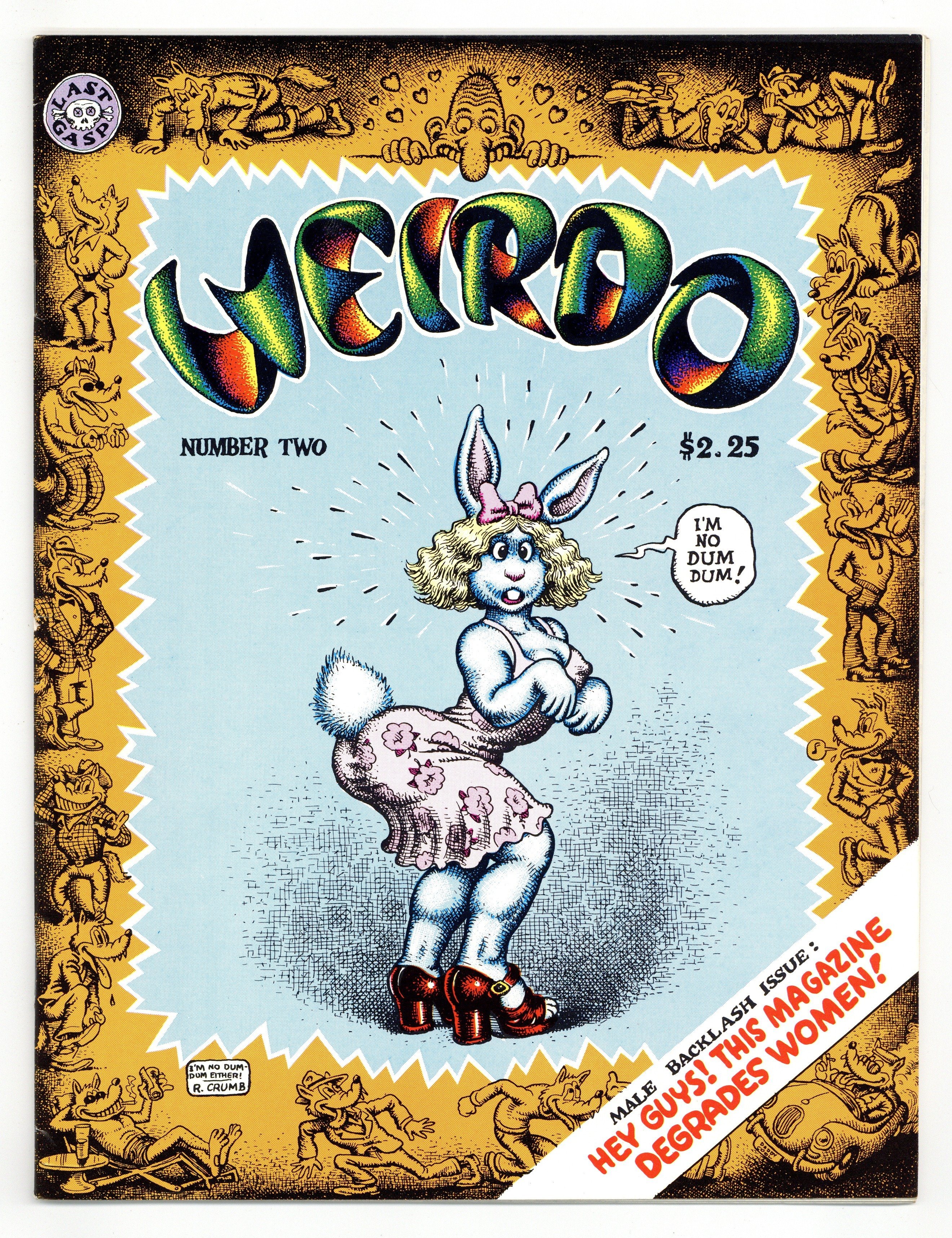 Tags: Underground$25.002nd Printing. Cover by Robert Crumb. "Hillary's Impertinent Pup," photos by Terry Zwigoff; Hillary takes her dog for a walk but gets all tangled up. "The Entropy Crisis," script and art by Harry S. Robins; Poem about entropy. "Science Or Sanity?", script and art by Harry S. Robins; The Professor lucks out in love. "Weirdo Does a Total Makeover," photos by Terry Zwigoff; A bum has a Weirdo makeover. "Backwoods Comic Postcards," art by Norman F. Pettingill; Eight cartoons about 1940s rural American life. "Mr. Bunch Takes a Sabbatical," script and art by Aline Kominsky-Crumb; The Bunch loses her masculine side. "Weirdo Art Section: It's Art For Art's Sake!" by Robert Crumb; Cartoon doodles. "Bloods in Space," script by Kevin Lambert, art by Dori Seda; Earth has a visitation. Assorted one-page strips by Robert Crumb. 44 pgs., B&W. 8-in. x 11-in. $2.25. Cover price $2.25.
