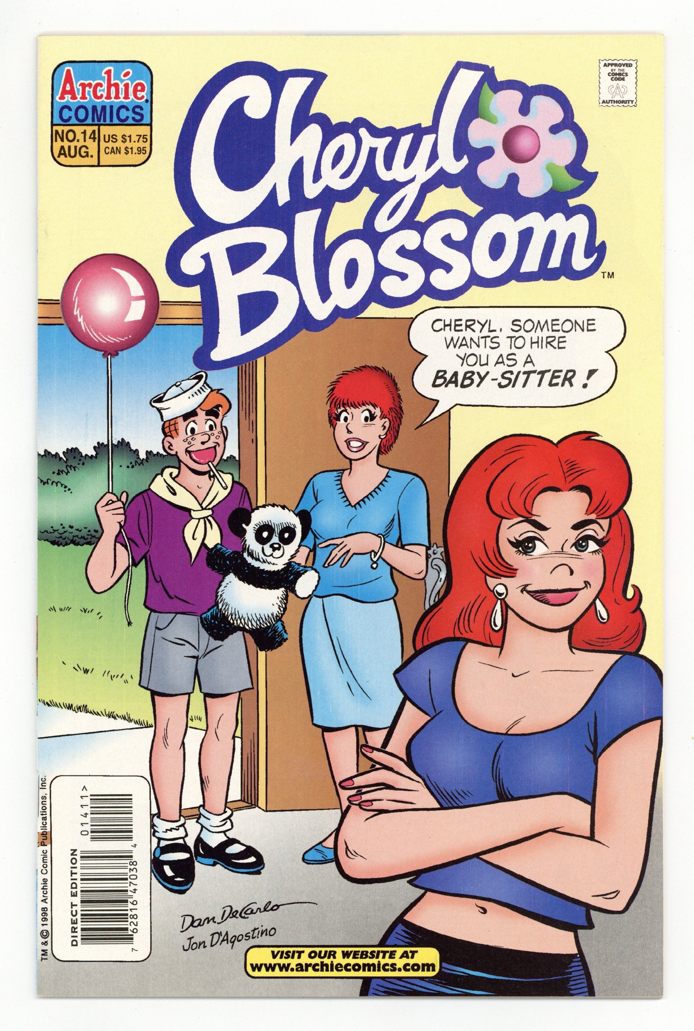 Tags: ArchiePublished Aug 1998 by Archie Publications.$13.50Cover pencils by Dan DeCarlo, inks by Jon D'Agostino. "Cheers to You" Part 1 and 2, script and pencils by Dan Parent, inks by Jon D'Agostino; Cheryl joins the Riverdale cheerleading squad and hires a famous gymnast to coach her; The team's bus gets stuck in traffic on the way to a competition. "One Cool Cat" one-page story; Salem sunbathes in the neighbor's pool. Cheryl's Spring Carnival Style illustration. "Family Matters"; Cheryl gives her cousin Elaine a bad makeover to keep her away from Archie. "That Makes Scents," script and pencils by Dan Parent, inks by Rudy Lapick; Cheryl creates her own perfume which acts as a mosquito repellent. 36 pgs., full color. Cover price $1.75.