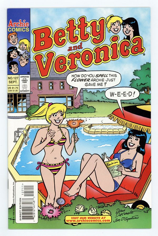 Tags: ArchiePublished Sep 1998 by Archie Publications.$28.00Written by Mike Pellowski, Kathleen Webb, and Dan Parent. Art by Dan DeCarlo. Cover by Dan DeCarlo, Jon D'Agostino, and Henry Scarpelli. Betty agrees to sleep over at the Lodge Mansion so Veronica won't be home alone. Veronica bets Jughead that she won't even look at another guy while Archie is away for two weeks. Betty and Veronica revisit the old swimming hole they played in as kids, then try to keep the location secret from the rest of the gang. Betty And Veronica fashion page by Rex W. Lindsey. 36 pages, full color. $1.75. Cover price $1.75.