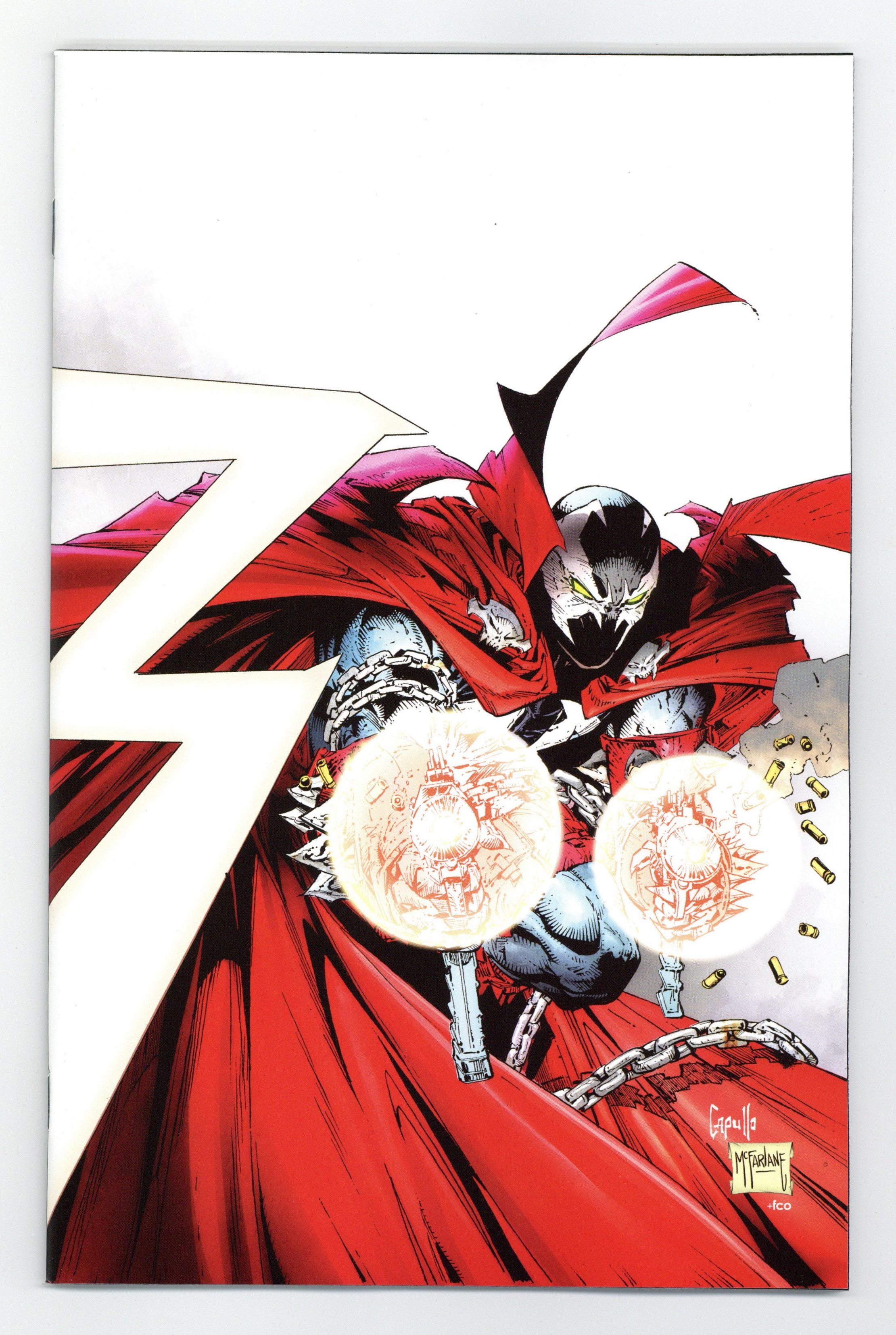 Limited 1 for 25 Retailer Incentive Variant Cover. Written by Todd McFarlane and Scott Snyder. Art by Todd McFarlane, Greg Capulo, J. Scott Campbell, Jason Shawn Alexander, and Jerome Opena. Cover by Greg Capullo and Todd McFarlane. SPAWN MAKES HISTORY! With this 300th issue, SPAWN becomes the longest-running independent series in comic book history. To celebrate, legendary artists TODD McFARLANE and GREG CAPULLO return with ALL-NEW interior pencils, with additional art provided by JASON SHAWN ALEXANDER, J. SCOTT CAMPBELL, and JEROME OPEÑA, a cavalcade of celebratory covers, and additional writing by SCOTT SNYDER! And next month, RECORDS WILL BE BROKEN with SPAWN #301! 72 pages, full color. Cover price $7.99.