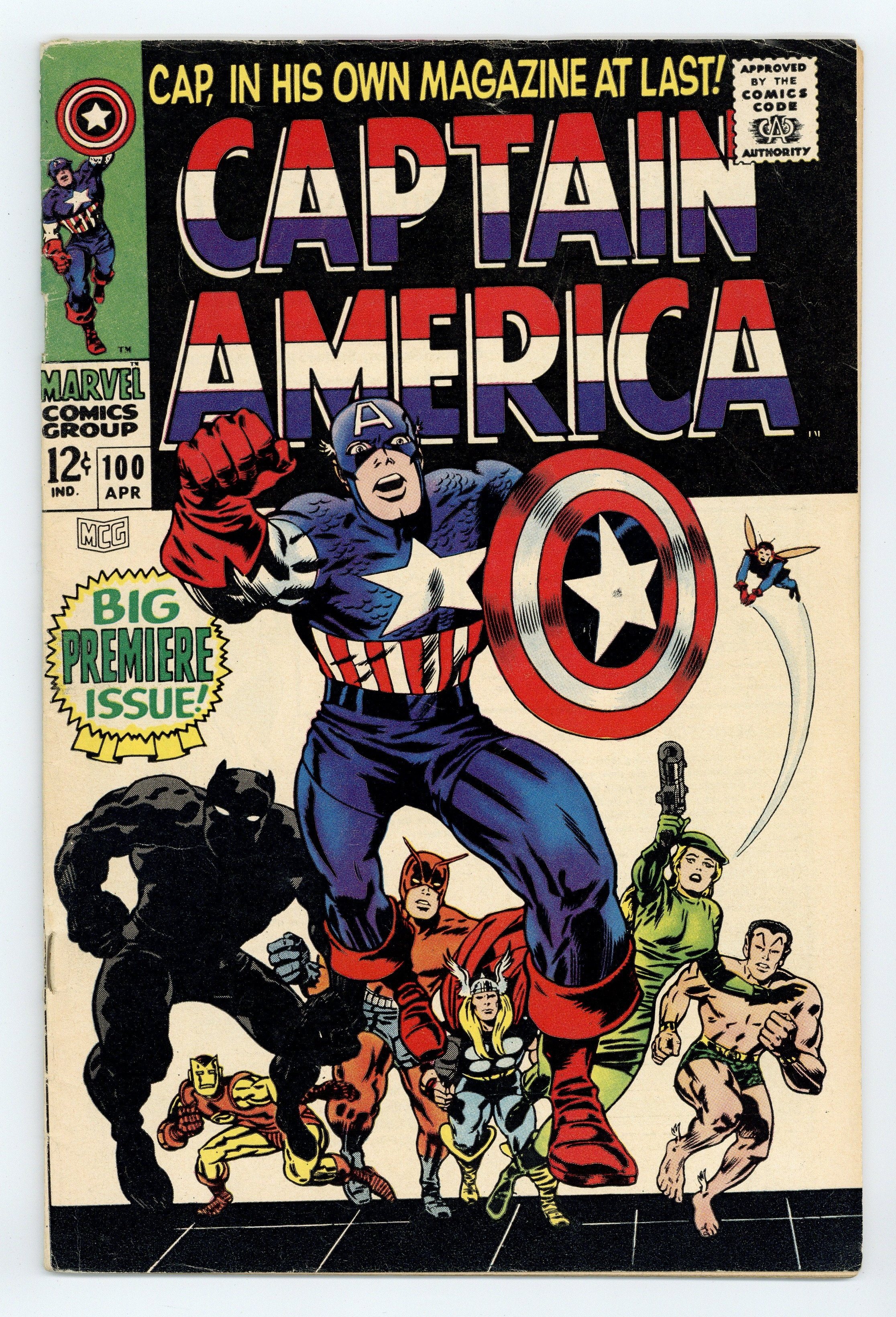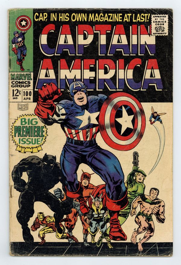 Tags: Marvel Legacy Numbering: Captain America (part 100), Avengers, Black Panther, Captain America, Sub-MarinerCaptain America (1968 1st Series) 100 VG- 3.5