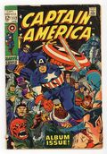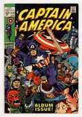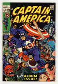 Tags: Marvel Legacy Numbering: Captain America (part 112), Captain America$47.50Cover pencils by Jack Kirby, inks by Frank Giacoia. "Lest We Forget!", script by Stan Lee, pencils by Jack Kirby (Jack did the art for this issue in a single 24 hour marathon!), inks by George Tuska; After Hydra attacks at a carnival, Captain Americas uniform, riddled with bullets, convinces everyone that Cap is dead; At Avengers Mansion, Iron Man prepares a statement saying Cap is dead; Reminiscing on Captain America's heroic feats during World War II, Iron Man recalls how Cap and Bucky battles the Red Skull, including a story in which Cap and Bucky ruined the Red Skulls plot to use a giant power drill; He also recalls Cap clashes with such villains as the Butterfly, the original Circus of Crime, the Unholy Legion of Beggars, White Death, the Toadman, and Baron Zemo; Cameo by Red Skull imposter George Maxon; Tony Stark (Iron Man) narrates this story. 36 pgs., full color. $0.12. Cover price $0.12.