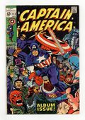 Tags: Marvel Legacy Numbering: Captain America (part 112), Captain America$32.00Cover pencils by Jack Kirby, inks by Frank Giacoia. "Lest We Forget!", script by Stan Lee, pencils by Jack Kirby (Jack did the art for this issue in a single 24 hour marathon!), inks by George Tuska; After Hydra attacks at a carnival, Captain Americas uniform, riddled with bullets, convinces everyone that Cap is dead; At Avengers Mansion, Iron Man prepares a statement saying Cap is dead; Reminiscing on Captain America's heroic feats during World War II, Iron Man recalls how Cap and Bucky battles the Red Skull, including a story in which Cap and Bucky ruined the Red Skulls plot to use a giant power drill; He also recalls Cap clashes with such villains as the Butterfly, the original Circus of Crime, the Unholy Legion of Beggars, White Death, the Toadman, and Baron Zemo; Cameo by Red Skull imposter George Maxon; Tony Stark (Iron Man) narrates this story. 36 pgs., full color. $0.12. Cover price $0.12.