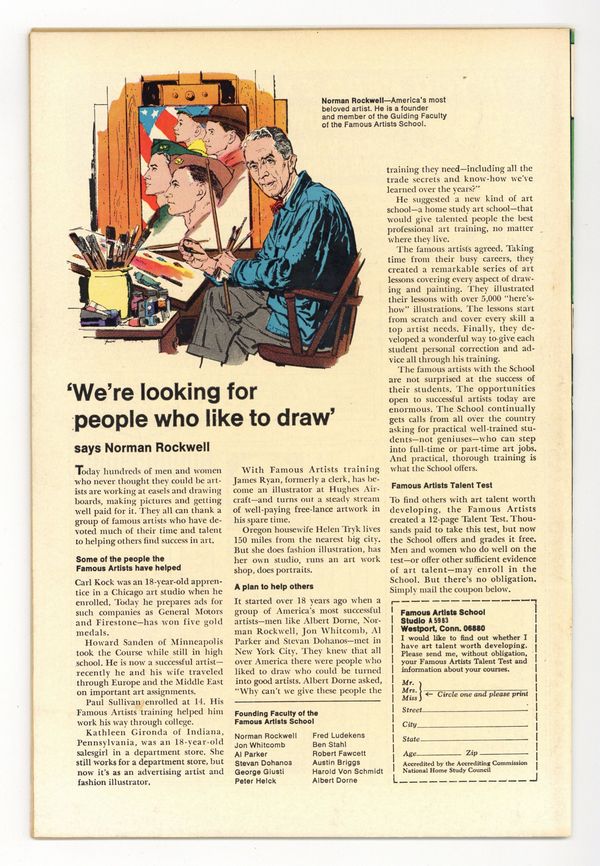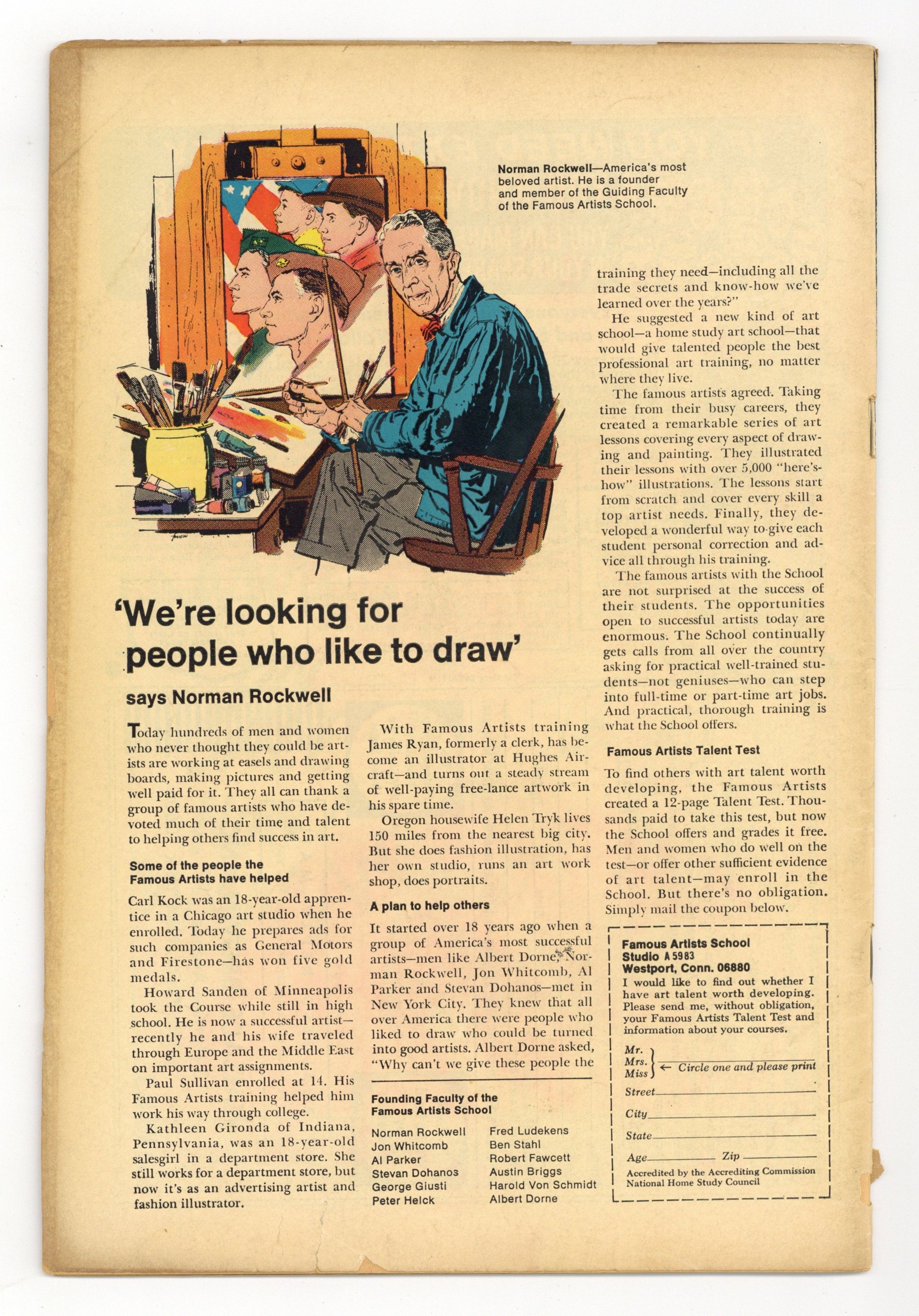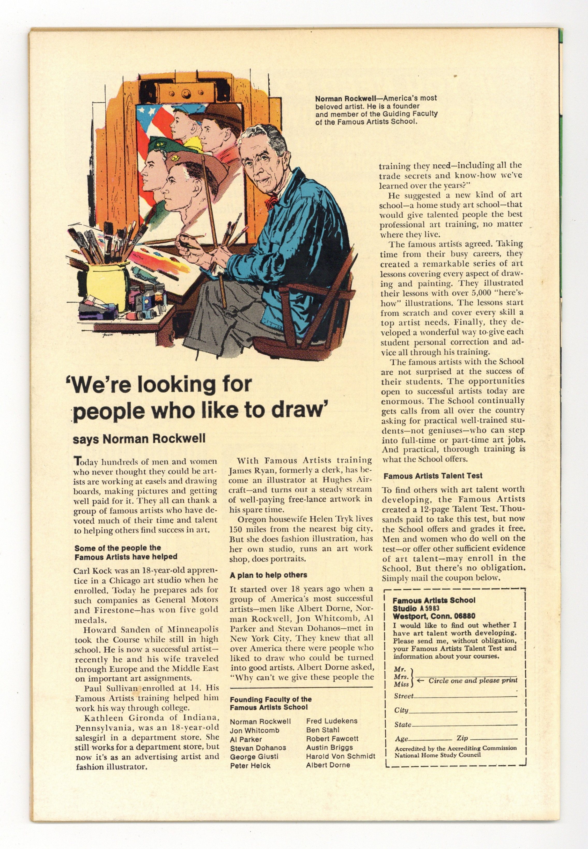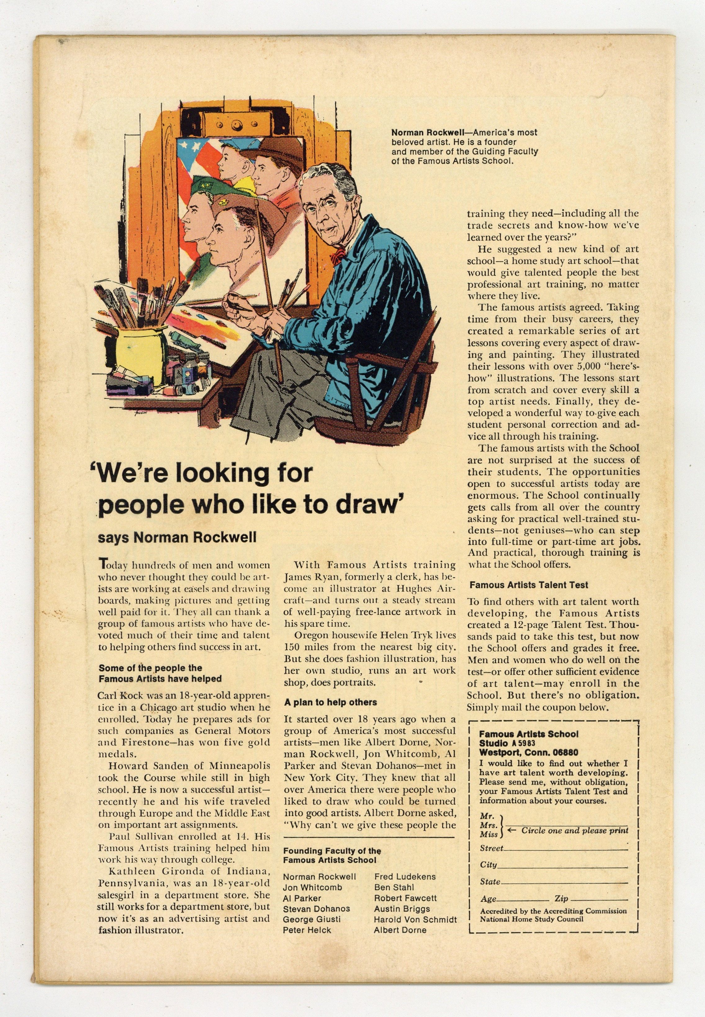 Starts Dec 8 Cover pencils by Jack Kirby, inks by Frank Giacoia. "Lest We Forget!", script by Stan Lee, pencils by Jack Kirby (Jack did the art for this issue in a single 24 hour marathon!), inks by George Tuska; After Hydra attacks at a carnival, Captain Americas uniform, riddled with bullets, convinces everyone that Cap is dead; At Avengers Mansion, Iron Man prepares a statement saying Cap is dead; Reminiscing on Captain America's heroic feats during World War II, Iron Man recalls how Cap and Bucky battles the Red Skull, including a story in which Cap and Bucky ruined the Red Skulls plot to use a giant power drill; He also recalls Cap clashes with such villains as the Butterfly, the original Circus of Crime, the Unholy Legion of Beggars, White Death, the Toadman, and Baron Zemo; Cameo by Red Skull imposter George Maxon; Tony Stark (Iron Man) narrates this story. 36 pgs., full color. $0.12. Cover price $0.12.