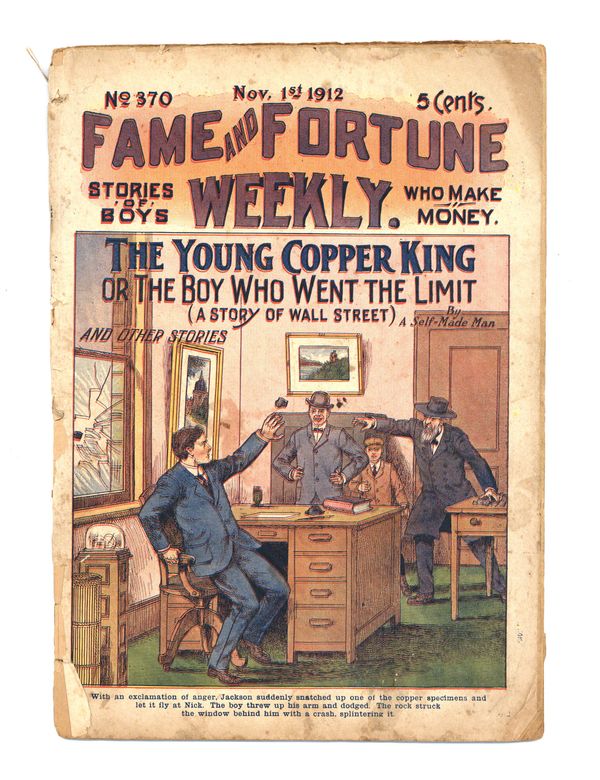 November 1, 1912. The Young Copper King; or, The Boy Who Went the Limit. 11" x 8", 32 pages. Cover price $0.05.