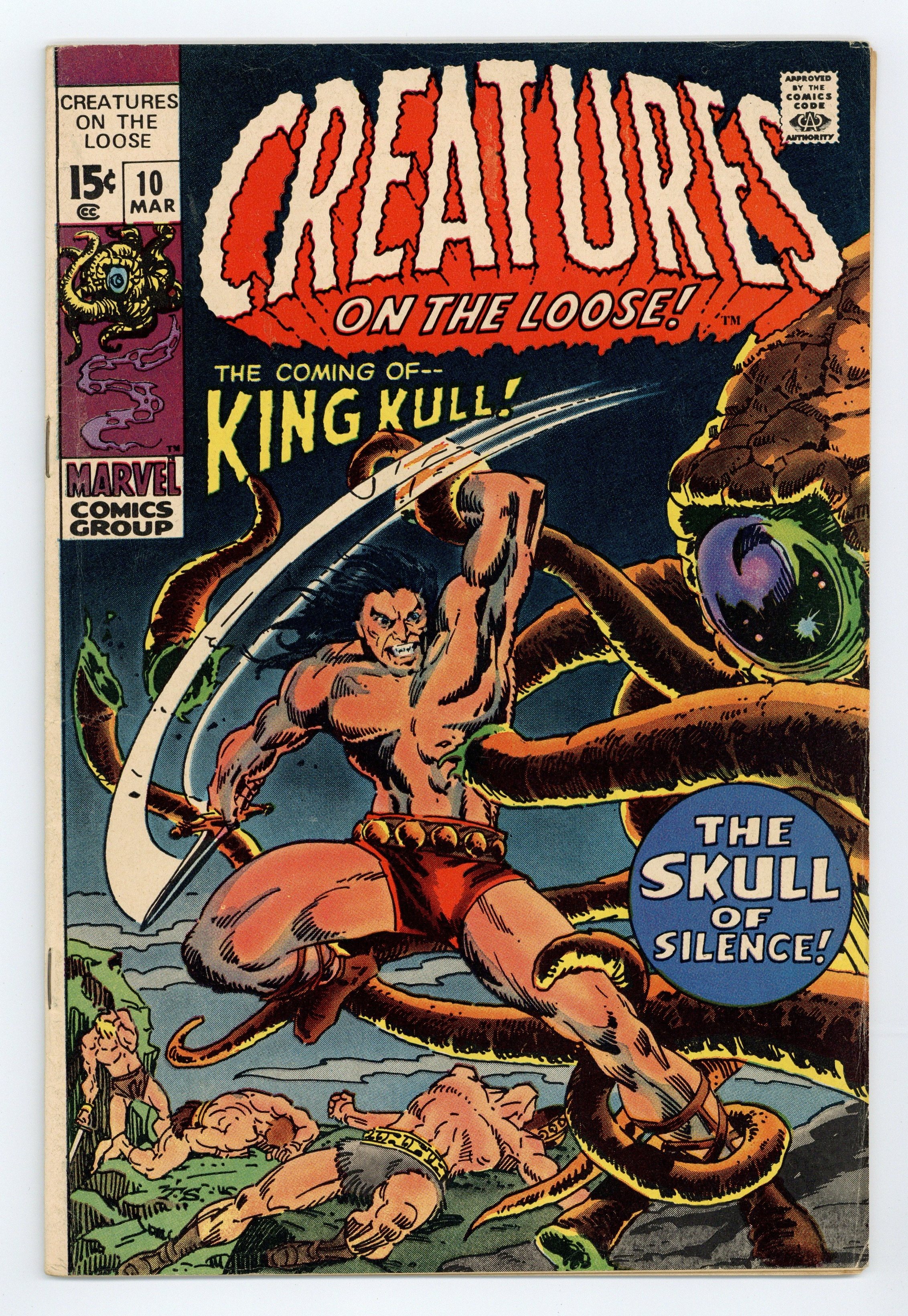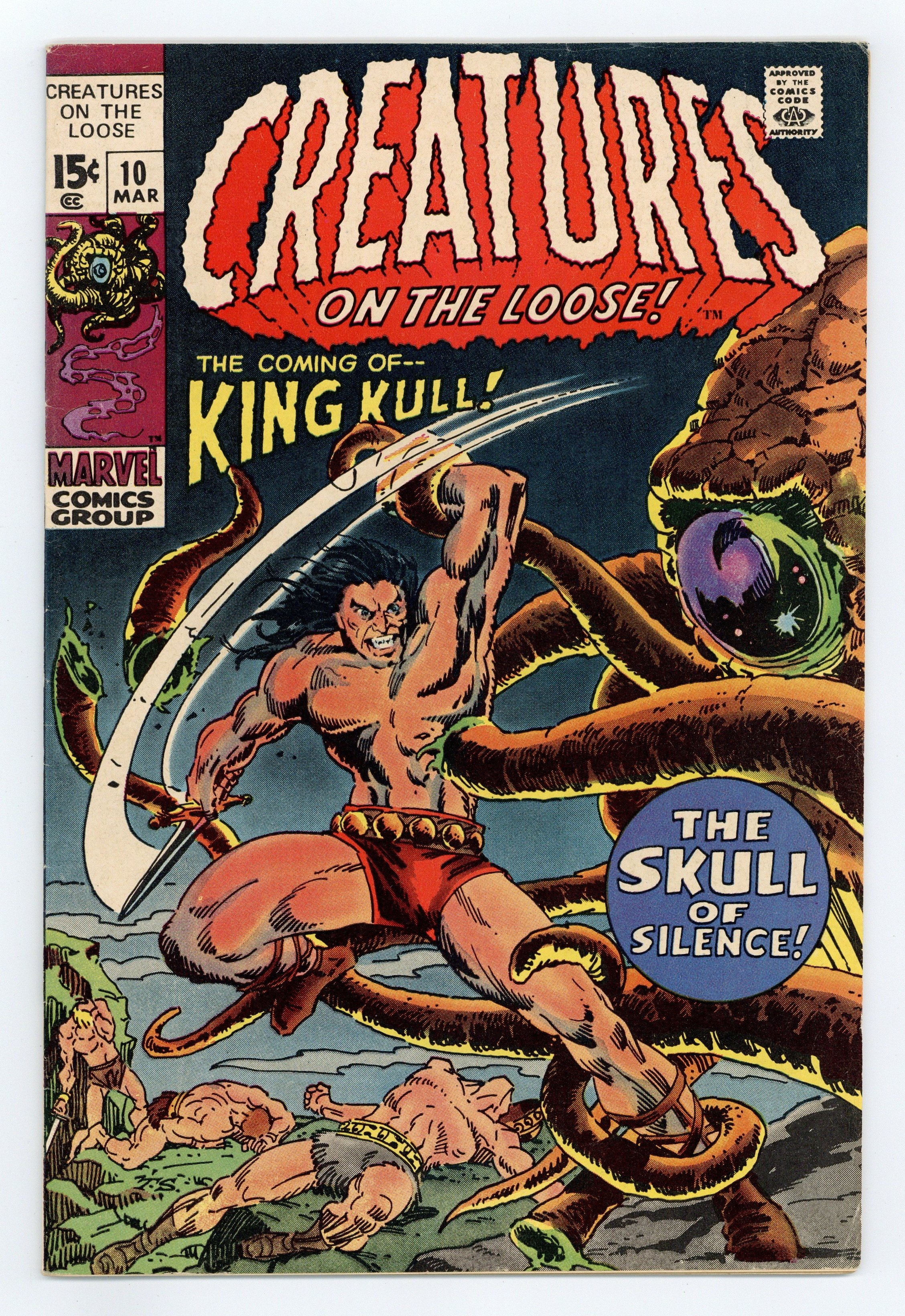 $15.50Series formerly "Tower of Shadows." Written by Roy Thomas. Art by by Berni Wrightson (adapted from the Robert E. Howard story). Cover by Marie Severin. New story: first full comic book appearance of King Kull in "The Skull of Silence; Kull's arrogance leads to the release of an ancient menace that he barely is able to defeat. Art by Jack Kirby and Dick Ayers. Reprint"Trull the Unhuman!"; The mental essence of an alien bent on global conquest takes over a steam shovel and is defeated by an elephant. 36 pages, full color. $0.15. Cover price $0.15.