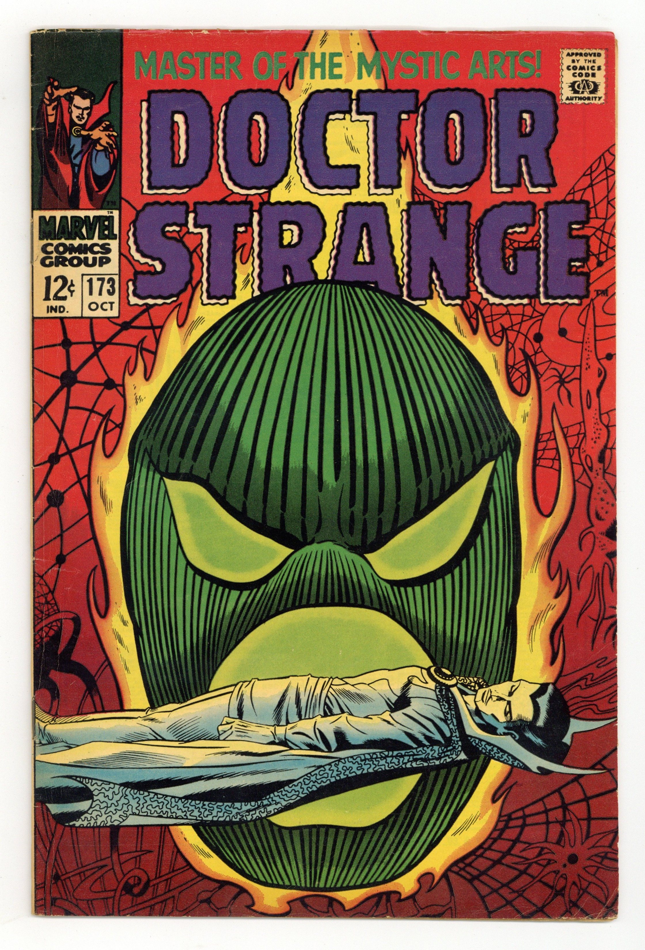 Tags: Marvel Legacy Numbering: Doctor Strange (part 173)$27.00Cover art by Dan Adkins. While a World Waits!, script by Roy Thomas, pencils by Gene Colan, inks by Tom Palmer; Umar frees Strange, via suggestion from Clea and Victoria Bentley; Dormammu defeated by his own vow never to enter the Earth dimension; curse returns him to the Dark Dimension; Dr. Benton, former medical colleague, offers consultant position to Strange. Cover price $0.12.