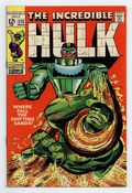 Tags: Marvel Legacy Numbering: Hulk (part 113), Hulk$33.50Cover pencils by Herb Trimpe, inks by Dan Adkins. Where Fall the Shifting Sands?, script by Stan Lee, pencils by Herb Trimpe, inks by Dan Adkins; Bruce Banner, dying on a decompressed rocket ship hurling back to earth, succeeds in turning back to the Hulk and surviving the experience; Once he makes it back to earth, he is accosted by Sandman who easily dupes the Hulk into believing he is his only friend in the world; On his new buddy's instructions, Hulk attacks Ross's missile base as the Sandman uses the diversion to try and steal some military hardware; Finally figuring out that he has been hornswaggled once again, Hulk beats up Sandman but then leaps away before Ross and Betty can tell him they may think he is not that bad a guy after all. 36 pgs. Cover price $0.12.