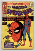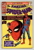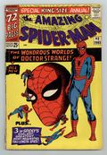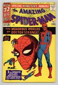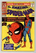$120.00Cover art by Steve Ditko. Doctor Strange guest stars in an all-new 20-page story, "The Wondrous World of Doctor Strange!", script by Stan Lee, art by Steve Ditko; Xandu sends his two henchmen to retrieve half of the Wand of Watoomb from Dr. Strange; Spider-Man mistakes the henchmen for burglars and tries to stop them, leading to a team up between Spider-Man and Dr. Strange to stop Xandu's plan. Spider-Man, script by Stan Lee, art by Steve Ditko; Spider-Man rescues John Jameson, J. Jonah Jameson's son, from his malfunctioning space capsule; reprinted from Amazing Spider-Man 1. The Uncanny Threat of the Terrible Tinkerer!, script by Stan Lee, art by Steve Ditko; When Peter Parker discovers some alien modifications to a professor's radio he tracks down a group of aliens with plans to take over the Earth; reprinted from Amazing Spider-Man 2. Marked for Destruction by Dr. Doom!, script by Stan Lee, art by Steve Ditko; Dr. Doom tries to trick Spider-Man into helping him defeat the Fantastic Four. Ditko also provides 5 pages of new pin-ups (Spider-Man's famous foes). Finally, there are three reprints from Amazing Spider-Man 1 ("Spider-Man"), 2 ("The Uncanny Threat of the Terrible Tinkerer!"), and 5 ("Marked for Destruction by Dr. Doom!"). Giant 76-page special! Reprinted in Marvel Tales # 167. 76 pgs., full color. Cover price $0.25.