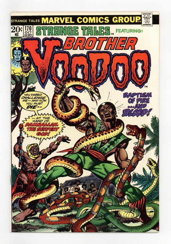 Cover pencils by Gil Kane. "Baptism of Fire!", script by Len Wein, pencils by Gene Colan, inks by Dan Adkins; Papa Jambo trains Jericho Drumm to be Brother VooDoo; Brother VooDoo then returns and stops Damballah, the Serpent God. 36 pgs., full color. Cover price $0.20.