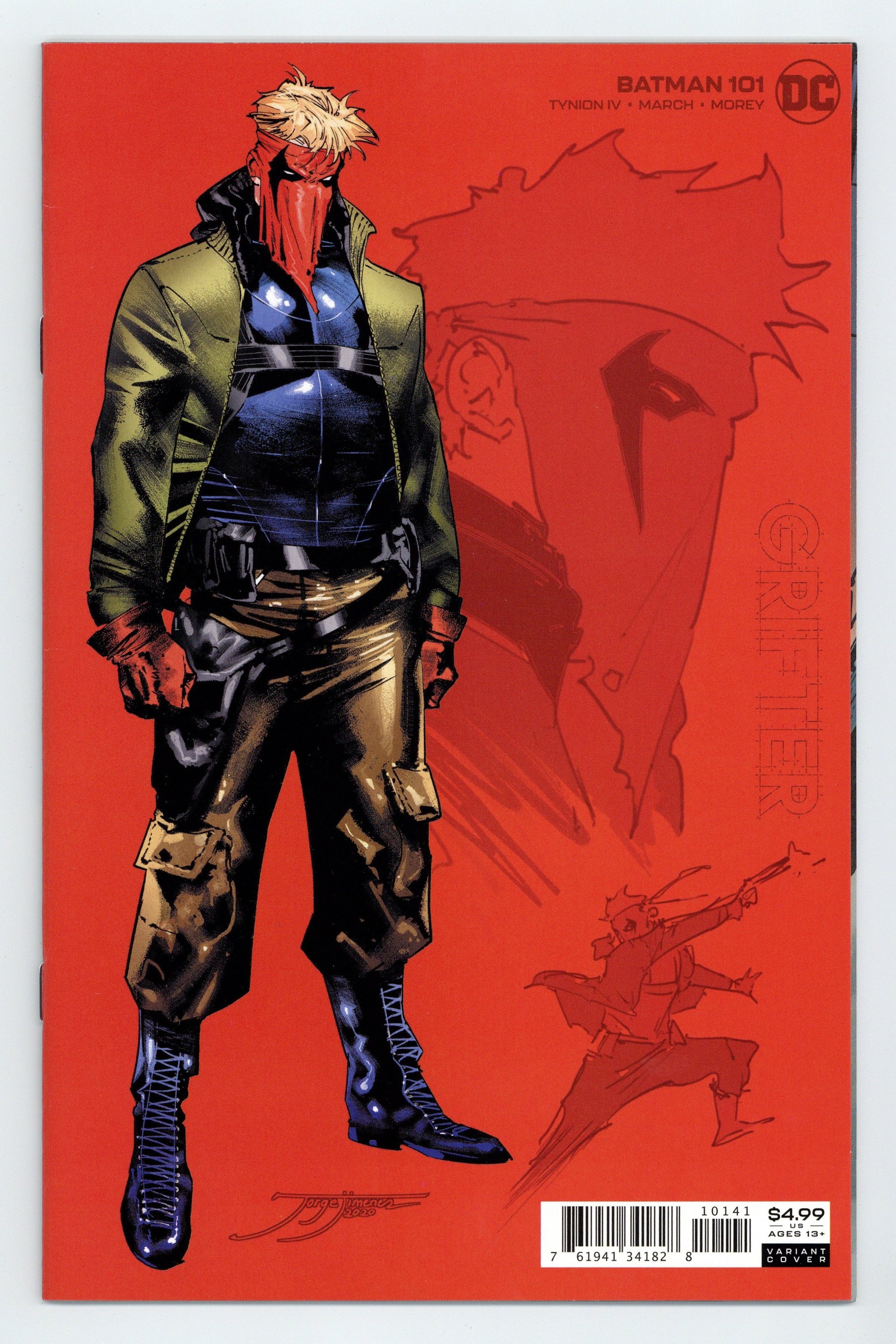 Limited 1 for 25 Retailer Incentive Variant Cover. Written by James Tynion IV. Art by Guillem March. Cover by Jorge Jimenez. A new day dawns in Gotham and the horrors of The Joker War are just being realized. A bold new direction for Batman begins as Bruce Waynes circumstances are forever changed. How did the Jokers rampage affected the citizens of the city? And why does Cole Cash—a.k.a.—Grifter, now work for Lucius Fox?! 32 pages, full color. Rated T+ Cover price $4.99.