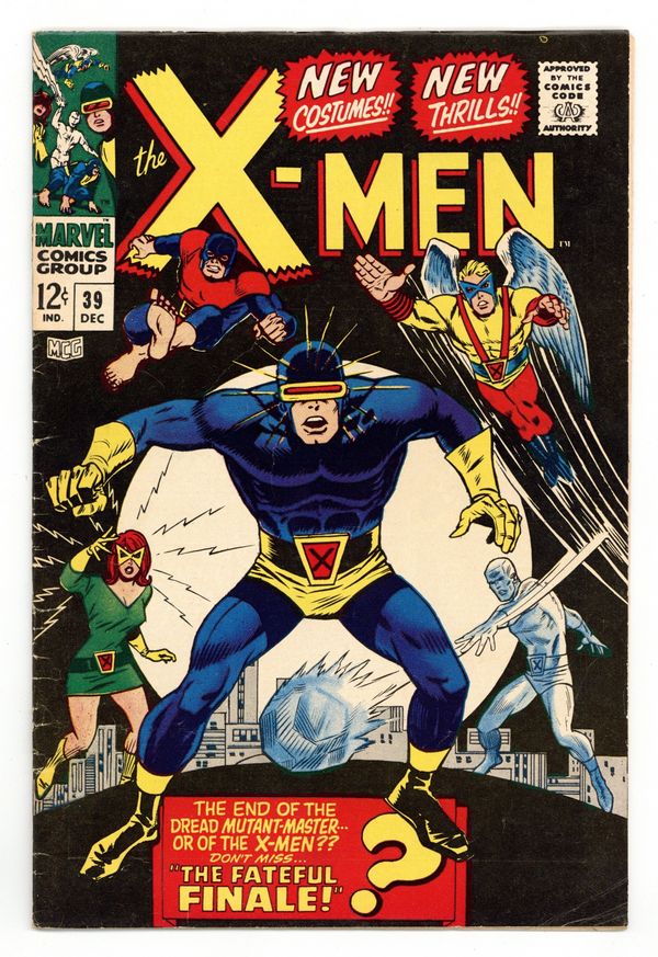 Cover art by George Tuska. The X-Men get new costumes in "The Fateful Finale!" Script by Roy Thomas, pencils by Don Heck, inks by Vince Colletta. Mastermind and Unus attack Cyclops and Iceman; Marvel Girl frees herself and others from jail and convince the Russians that Blob has a bomb and wants to initiate WWIII; the mutants battle the Mutant Master. Appearances by the Banshee, the Mutant-Master, the Changeling, the Blob, Mastermind, Unus the Untouchable, and the Vanisher. Back-up story with the origin of Cyclops in "Lonely Are the Hunted!" Script by Thomas, pencils by Werner Roth, inks by Verpoorten. 36 pgs. Cover price $0.12.