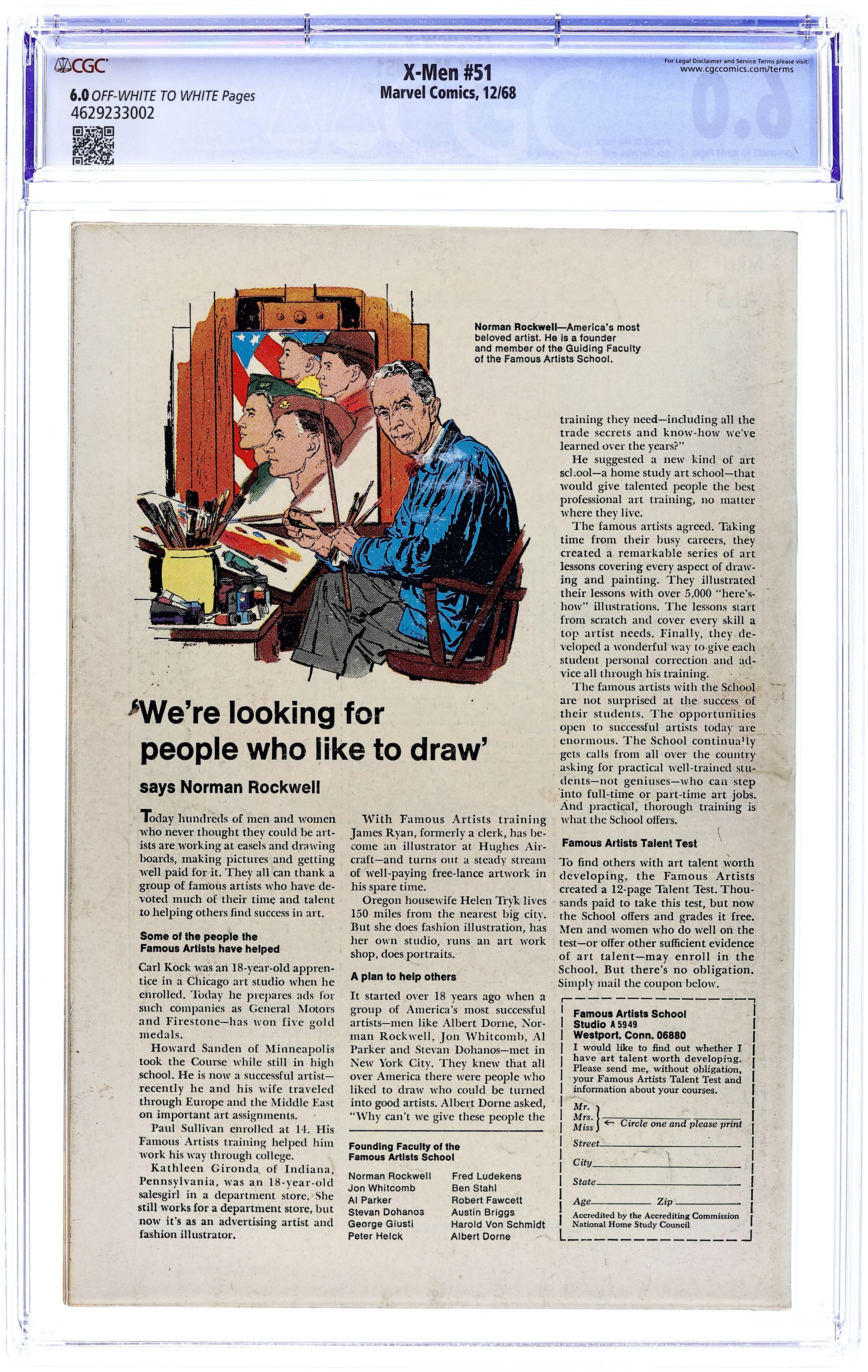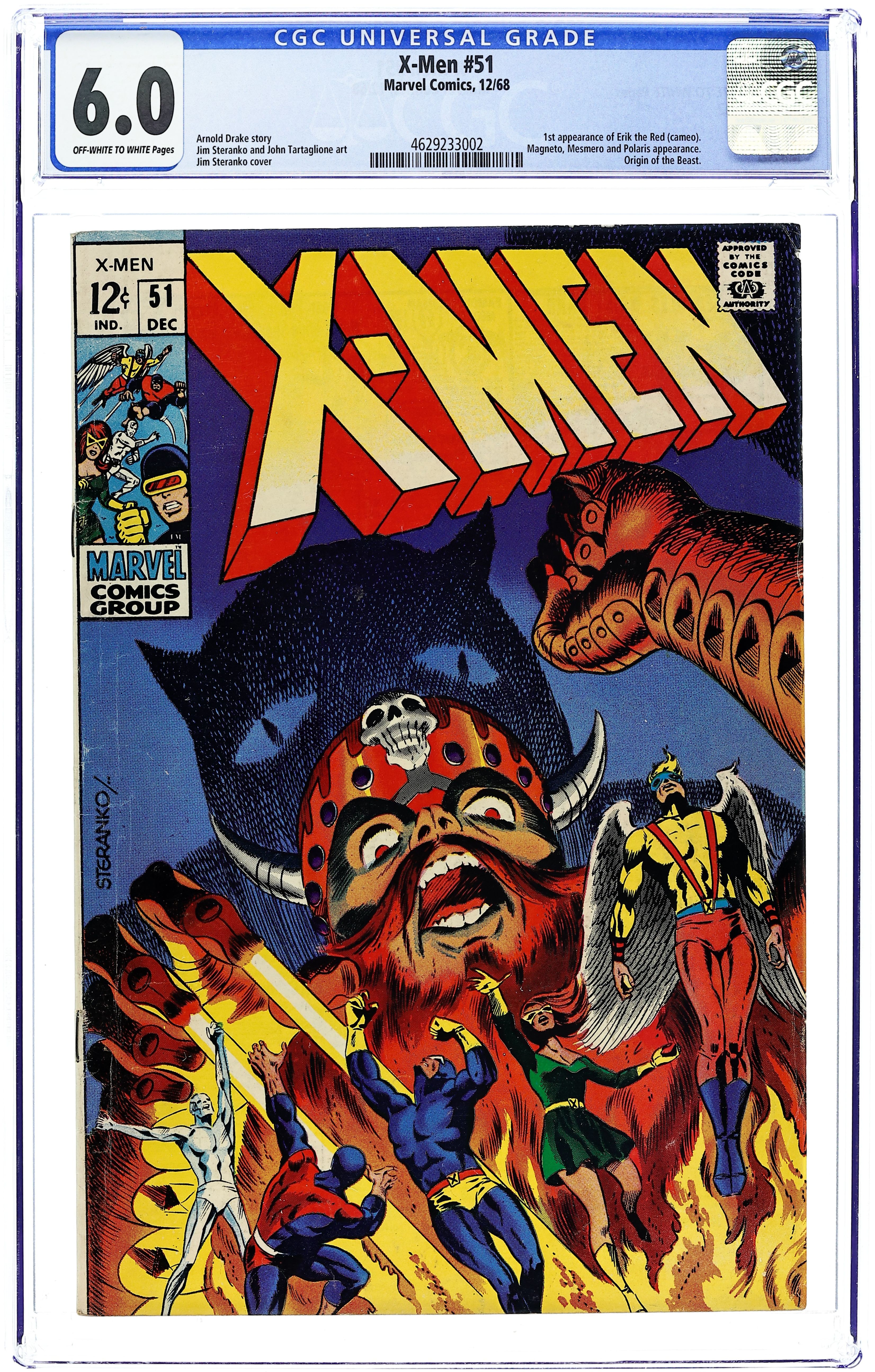 Cover art by Jim Steranko. The Devil Had a Daughter!, script by Arnold Drake, pencils by Jim Steranko, inks by John Tartaglione; the X-Men battle, Magneto, Mesmero, and company; Magneto tells everyone that Lorna Dane is his daughter. The Lure of the Beast-Nappers!--The Origins of the Uncanny X-Men, script by Arnold Drake, pencils by Werner Roth, inks by John Tartaglione; Beast's origin continues. 36 pgs. $0.12. Cover price $0.12.