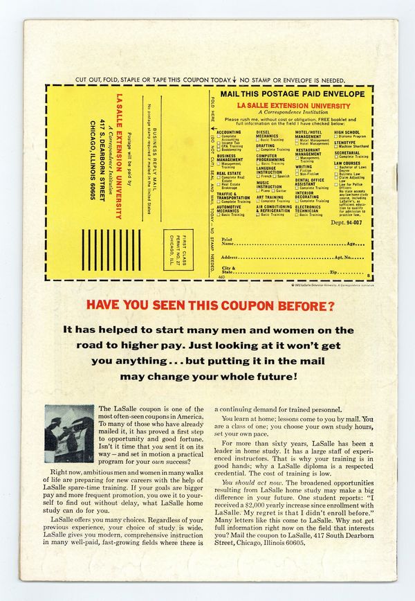 Cover pencils by Jack Kirby, Don Heck, John Romita, and John Verpoorten (alterations), inks by George Roussos, John Romita, and John Verpoorten. We, the Jury, script by Roy Thomas, pencils by Ross Andru, inks by Don Heck; the X-Men battle the Factor Three in Europe; the Mutant-Master holds Professor X and Banshee captive; Juggernaut cameo; reprinted from issue 37. 36 pgs. $0.20. Cover price $0.20.