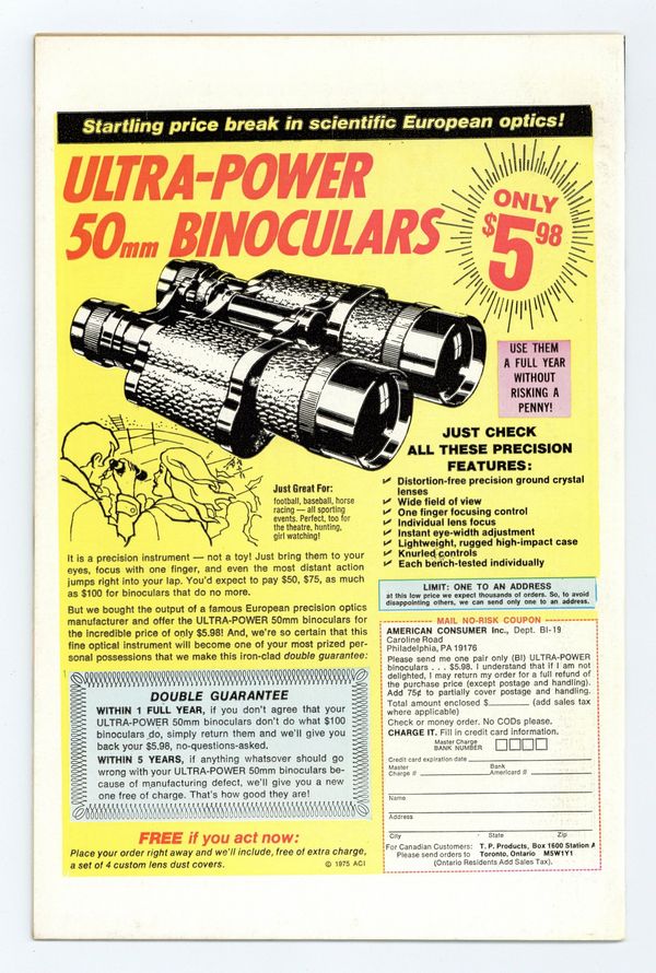 Starts Mar 9 "Warhunt!" Part 2 of 2. Story by Chris Claremont and Len Wein. Art by Dave Cockrum and Sam Grainger. Cover by Gil Kane. In order to stop the sinister madman Count Nefaria from raining nuclear Armageddon down upon the world, the new X-Men must fight their way through the Count's mutated bodyguards - the Ani-Men! Plus, one X-Man makes the ultimate sacrifice! NOTE: Death of Thunderbird I. 36 pgs. Cover price $0.25.