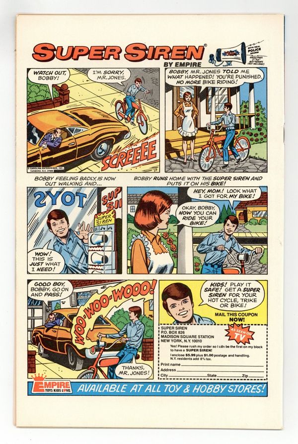 Starts Dec 22 Cover by Neal Adams. "The Experiment That Backfired on Superman", script by Cary Bates (pgs. 1-3; 17) and Dennis O'Neil (pgs. 4-16), pencils by Curt Swan, inks by Joe Rubinstein (pgs. 1-3, 17) and Murphy Anderson (pgs. 4-16); En route to the laboratory of Professor Bolden to help test a new energy source, Superman is attacked by a pair of thieves using Bolden's device; while unconscious, Superman dreams of Professor Bolden's first experiment: the Kryptonite Engine; Clark Kent begins his TV career. 36 Pages, Full Color. Cover price $0.35.